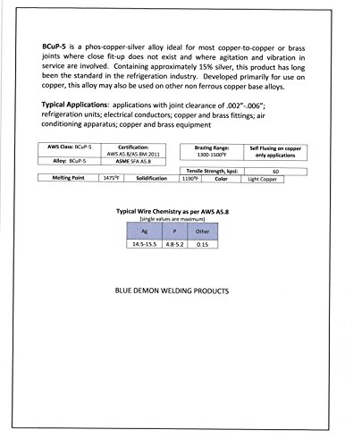 Blue Demon BCuP-5 X 1/8" X .050" X 1 Pound tube (15% Silver) silver phos copper brazing rod