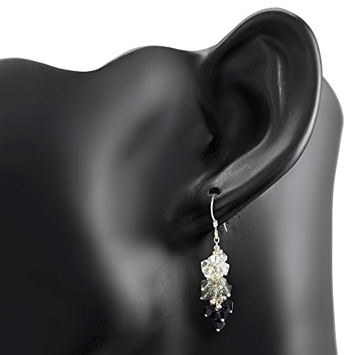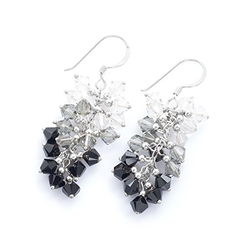 These beautiful shining swarovski earrings would be a wonderful addition to any wardrobe. The included black velvet pouch also makes it the perfect gift for someone special. Made from bicone faceted swarovski beads, 925 Sterling Silver beads and sterling silver ear wire with stamped 925. The crystal beads are handwired with silver beads in clustered design. The colors are chosen by our designer to make beautiful matching of 3 colors in one earrings. The color name of swarovski crystal in this set is Crystal AB, Black Diamond, Jet. Perfect to wear as everyday jewelry or in official occasion.