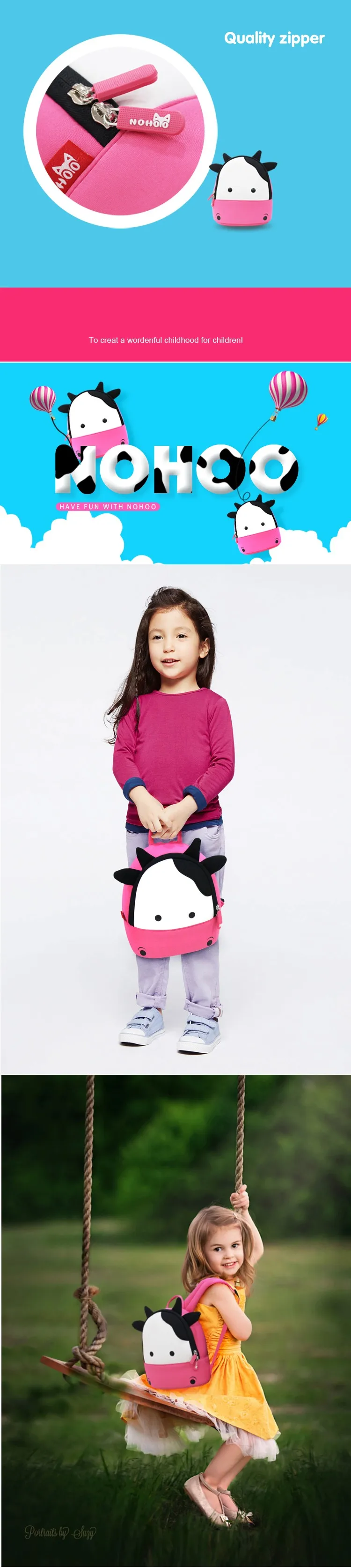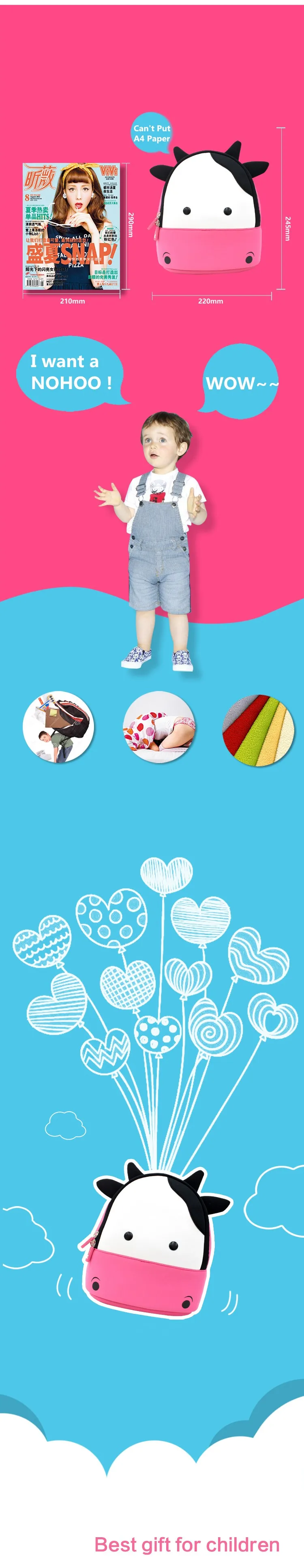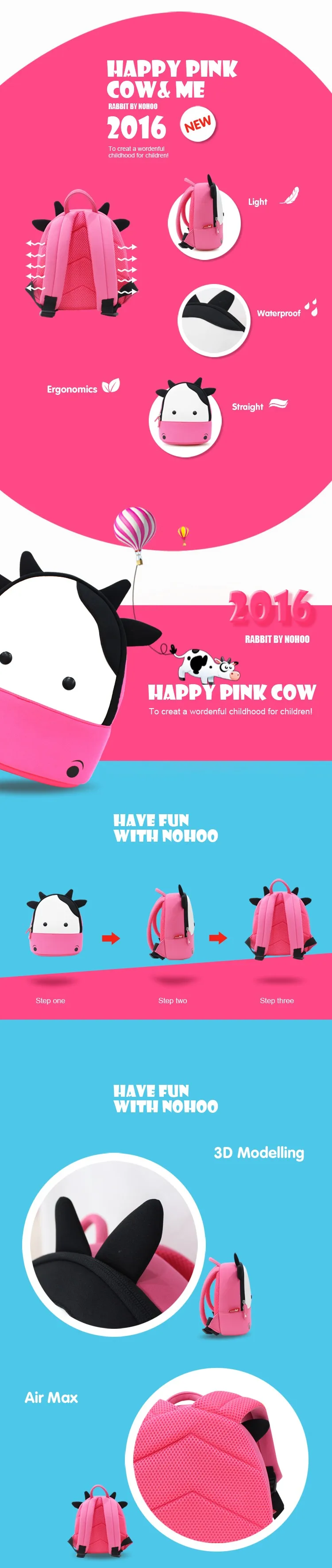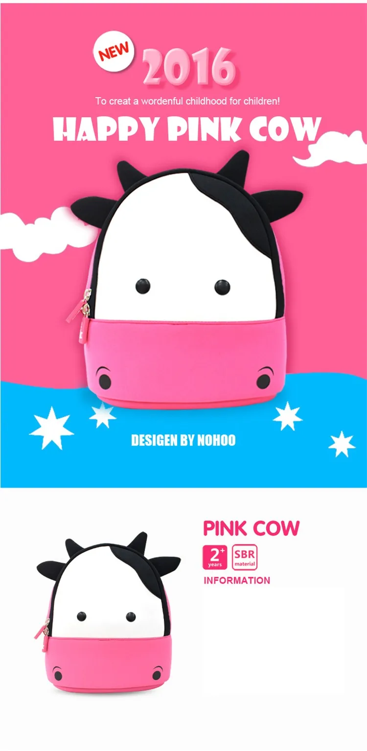 NOHOO New Arrival Animals Kids Baby Bags Waterproof Kindergarten 3D Cow School Bags For Girls Cute Cartoon School Bags