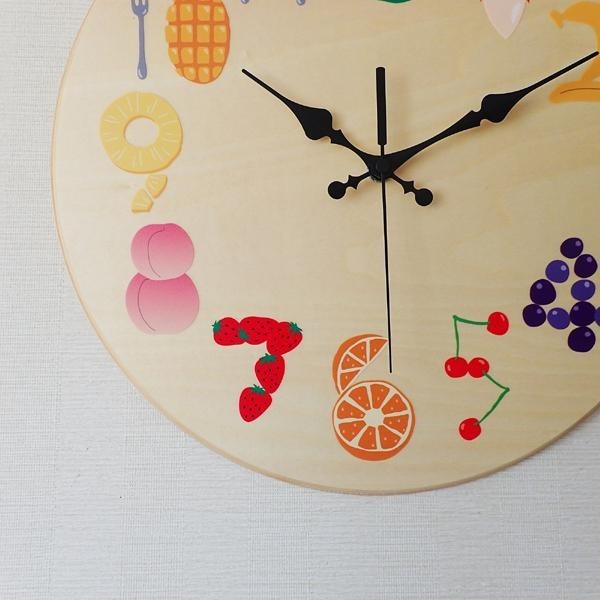 丸い形と温かみのある素材、そしてカラフルなフルーツの文字盤が可愛いくて個性的な壁掛け時計です。専用のBOXに入れてお届け致しますので、自分用はもちろんプレゼントにもピッタリです♪ |