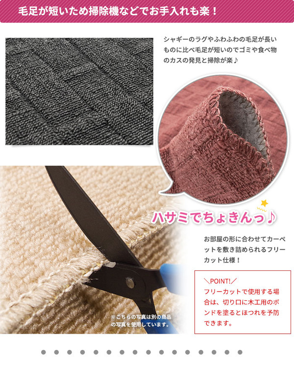 ●フリーカット可能で、お部屋の隅まできれいに敷き詰めることができます!