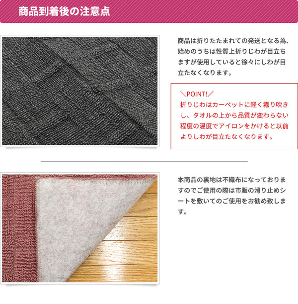 ※本製品の裏地は不織布になっておりますのでご使用の際は市販のすべり止めシートを敷いてのご使用をお勧めいたします。