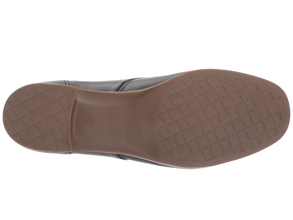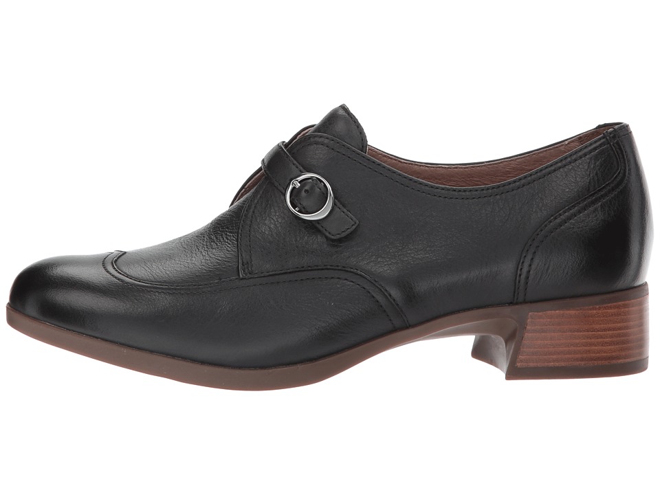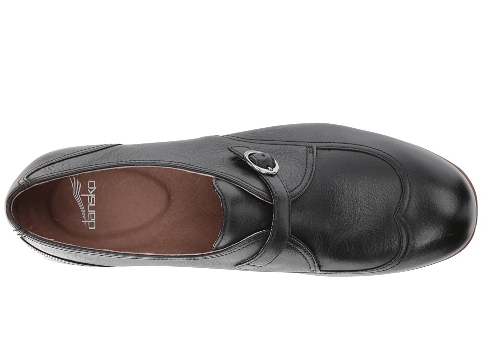 Description * The tailored Livie leaves you feeling comfort from day to night and looking perfectly polished. * Premium leather uppers with a wingtip and a round toe. * Monk strap with an adjustable buckle closure. * Smooth and breathable leather linings. * Offers a removable triple-density footbed with added arch support for all-day comfort. * Accommodates most standard and custom orthotics. * A steel shank provides stability and support. * 3M Scotchgardtrade; treated leather stacked heel. * Thermoplastic rubber outsole. * Imported. * Dansko Footwear Size Chart Measurements: * Heel Height: 1 1frasl;2 in * Weight: 11 oz * Product measurements were taken using size 38 (US Women's 7.5-8), width Regular. Please note that measurements may vary by size. |