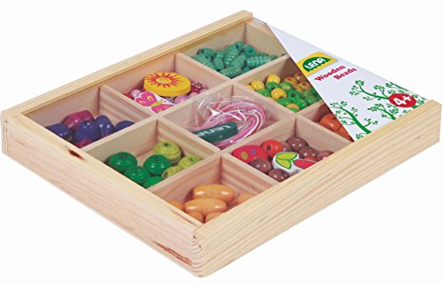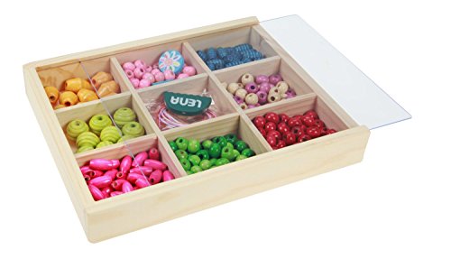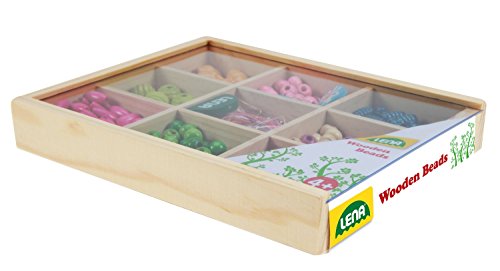 SIMM Spielwaren Lena 32012 - Bastelset Holzfadelperlen mittel in Holzkassette 290 Stuck ca. 2 cm