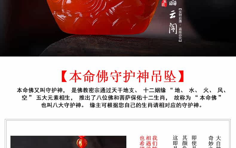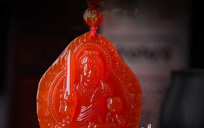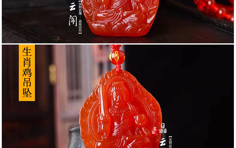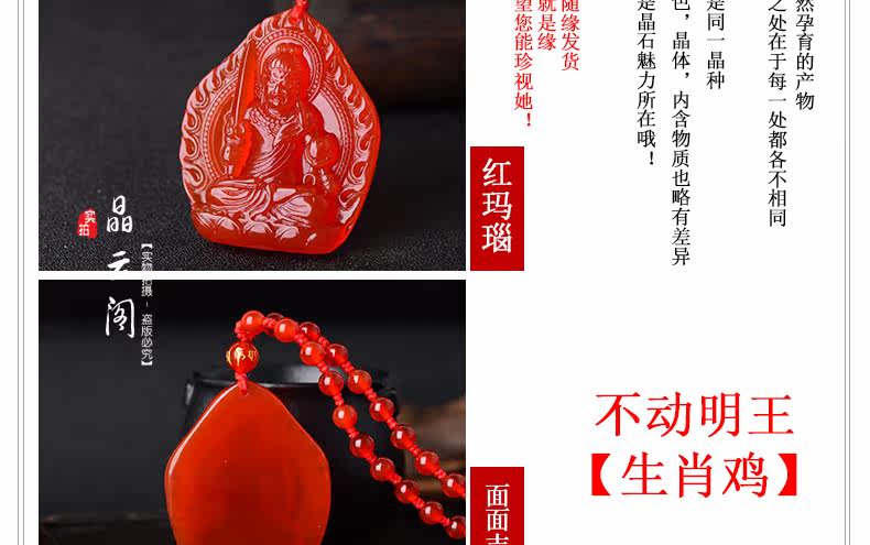 开光 天然红玛瑙不动尊吊坠 生肖鸡本命佛男女士水晶项链饰品挂件