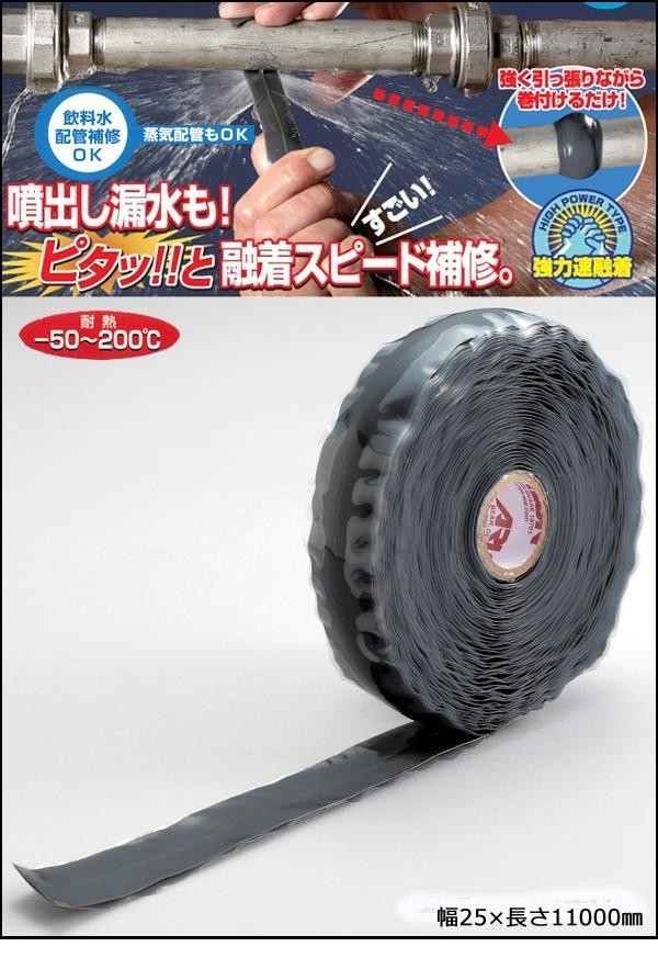 強く引っ張りながら巻き付けると、テープ同士が自己融着し、配管やホースの漏れ、にじみ、ピンホールなどの破損部や隙間に密着。圧力が掛かった状態でも簡単に補修できるテープです。ほとんどのパイプやホースの補修に使え、絶縁テープとしてもご使用いただけます。 |