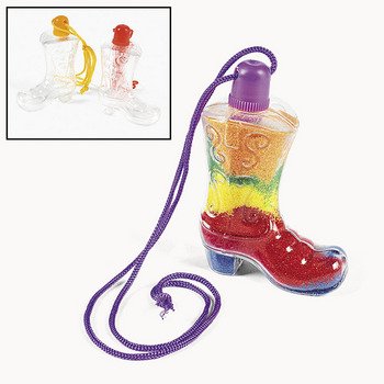 Studio : Fun Express, Inc. Publisher : Fun Express, Inc. Product Description Spice up the Western Party with Cowboy Party Favors! The cowboy boot sand art necklaces are an attractive addition for your cowboy and western party at an affordable price that keeps your check book as happy as your guests. And since no cowboy and western party is complete until everything is way out west, these sand art necklaces are a great craft and goody bag filler! A dozen sand art necklaces per package. Each package includes a mini sand funnel. 2 3/4" tall and 2 1/4" wide boot shape sand art containers. Assorted color lanyards. A must have way out west accessory, great for Ho-downs, and cowboy and western celebrations. 0