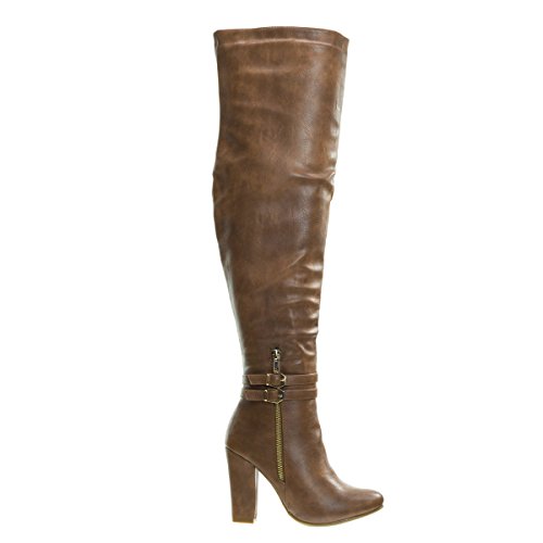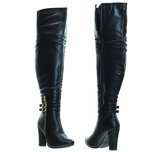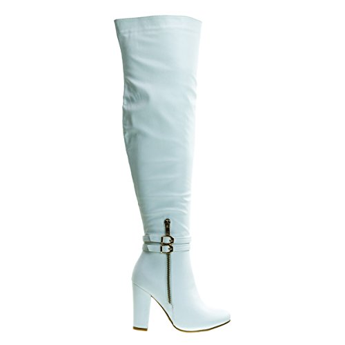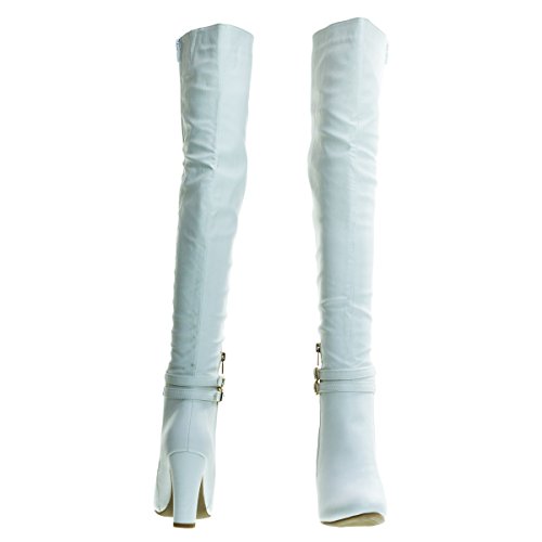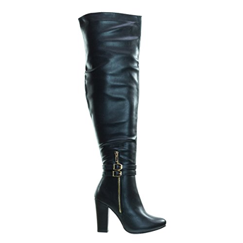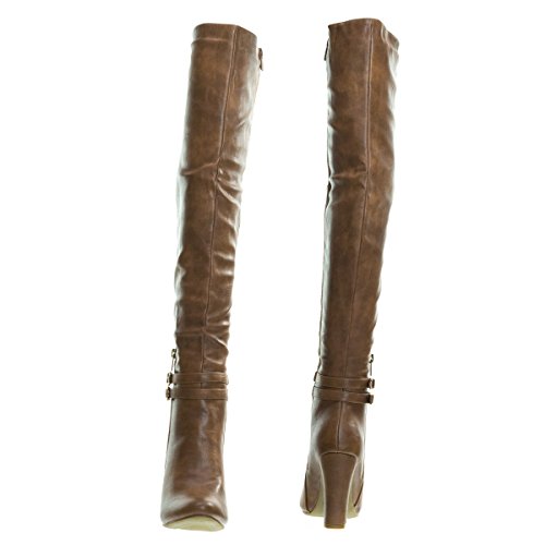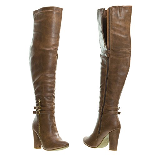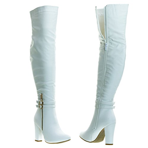 Binding : Apparel Product Description About This Shoes :Doll up in these lovely over the knee dress boots for your next fancy dinner. These beauties features a high block heel, almond toe, non functional double buckle, high contrast non functional zipper on the outer side of the shoes, a fully functional full zipper on the inside of the boots and thigh high shaft. Brand - Top Moda Colors Available: Black, White, Tan Brown Occasion: Formal Shoe Type: Over Knee Boots Shoe Style: Over Knee Boots Inner Lining: synthetic Heel Height In Inches - 4 Heel Style - Block Toe Style - round-toe Platform Height In Inches - 0.25 Shaft Height In Inches - 21 Circumference Opening - 16 Strap Type - strapless Sole - manmade All Man Made Material unless otherwise stated. Computer/Phone/Table monitors might show color differently because of its quality or calibration, we suggest you look at the photo in at least 3 monitors if you need exact color match of your shoes. 0