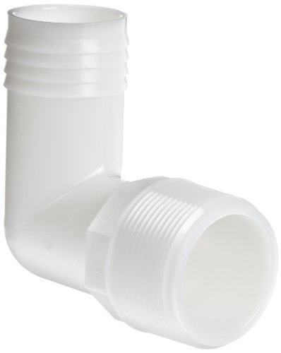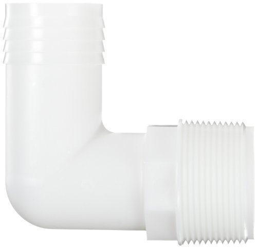 Thogus Nylon Tube Fitting, 90 Degree Elbow, White, 1/2" NPT Male x 13/16" Barbed (Pack of 10)