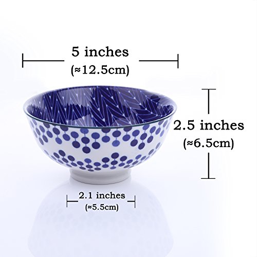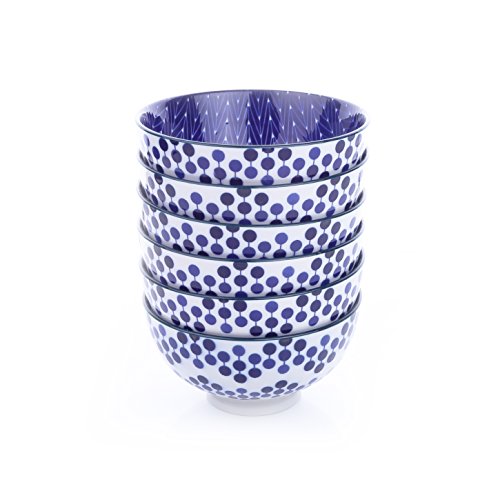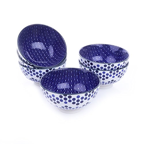 Vancasso 6-Piece 5" Porcelain Double-sided Patterned Dinnerware Bowl Set for Salad Dessert Cereals