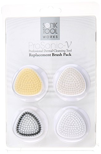 Sonic Tool Works ProSonic-V Professional Dermal Cleansing Tool Replacement Brush Pack contains one each: Normal Brush, Sensitive Brush, Body Brush and Exfoliation Brush. For best results replace brushes every 3 months. 4-pk.Feature
