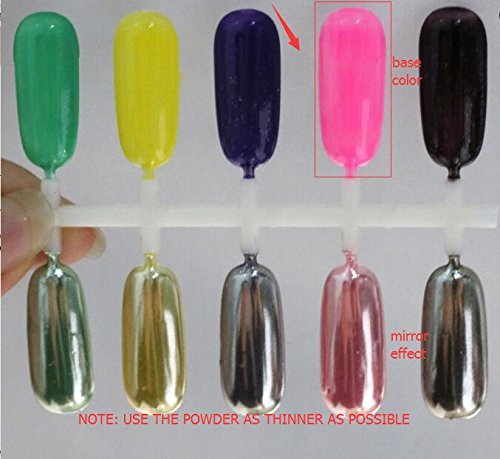 3. Various Combination - This powders can be matched up with all colors of gel polish to create varied results. USE SILVER CHROME OVER BRIGHT HOT PINK/PINK/RED GEL POLISH CAN GET A ROSE GOLD CHROME FINISH.