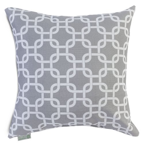 Add a splash of color and a little texture to any environment with these plush pillows by Majestic Home Goods. The Majestic Home Goods Gray Links Extra Large Pillow will instantly lend a comfortable look to your living room, family room or patio. Whether you are using them as decor throw pillows or simply for support, Majestic Home Goods Extra Large Pillows are the perfect addition to your home. These throw pillows are woven from outdoor treated polyester with over 1000 hours of UV protection and filled with Super Loft recycled Polyester Fiber Fill, for a comfortable but durable look. Spot clean only.Feature