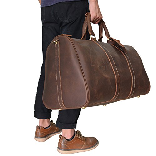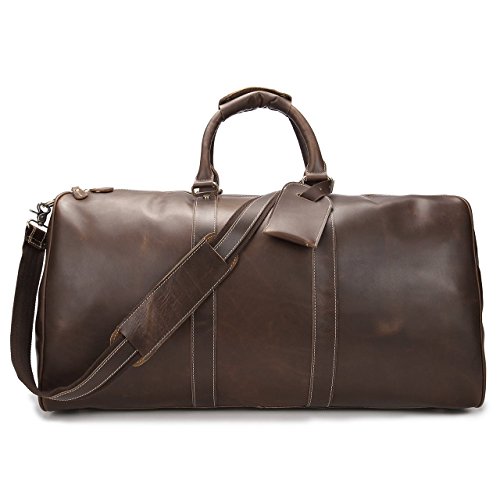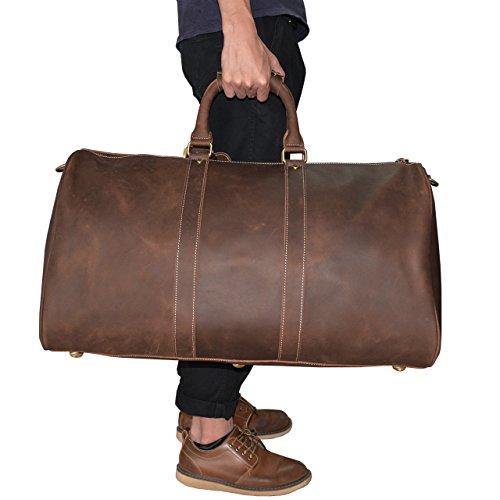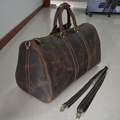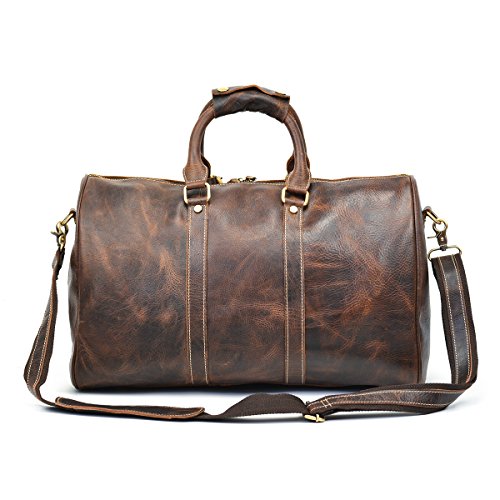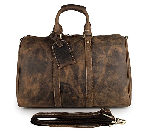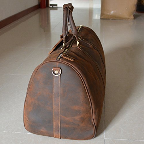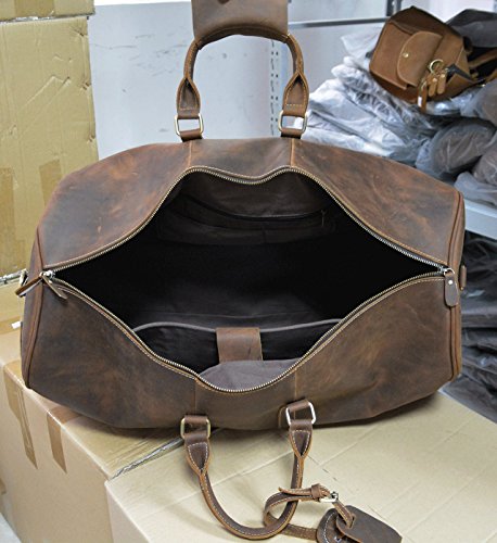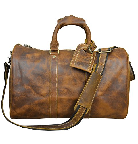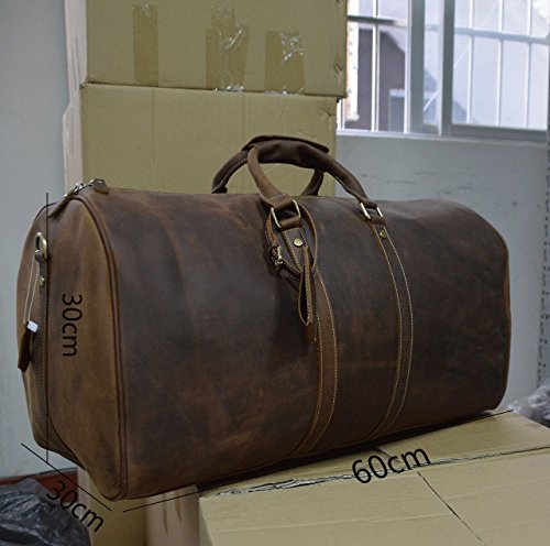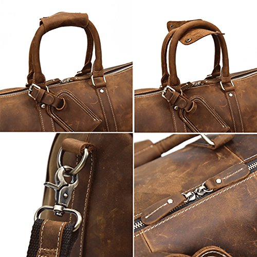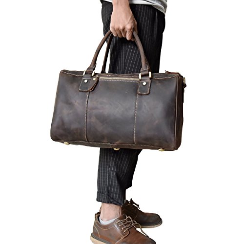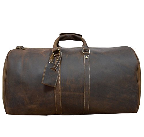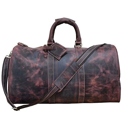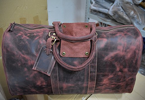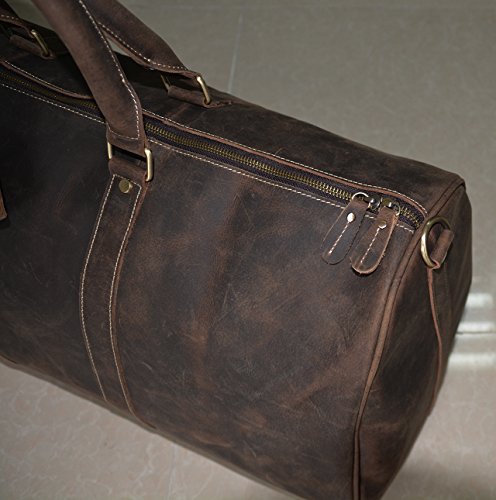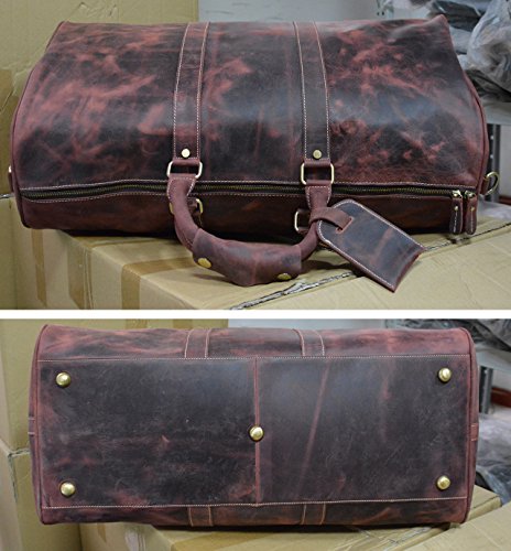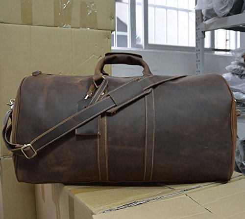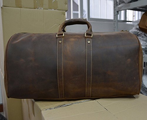 | Men's Genuine Leather Travel Duffle Large Cow Leather Weekend Bag Overnight Messenger |