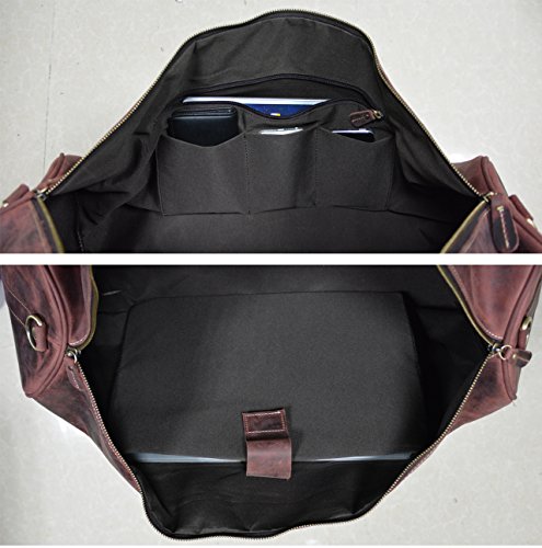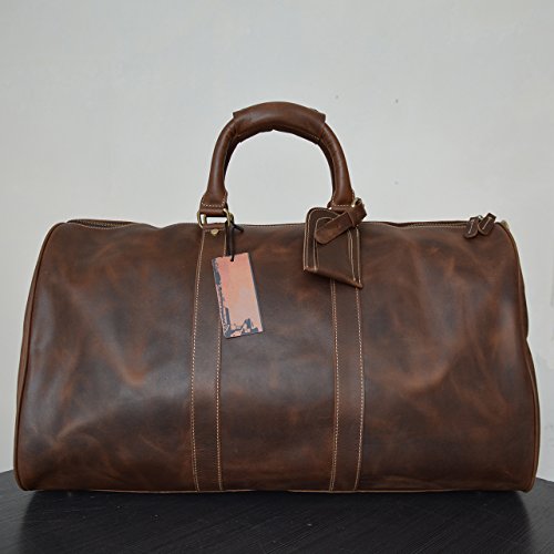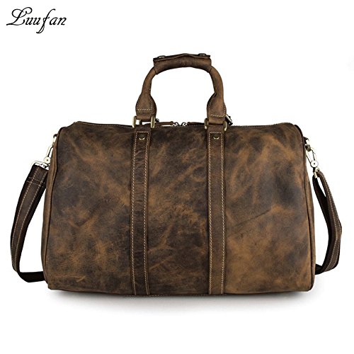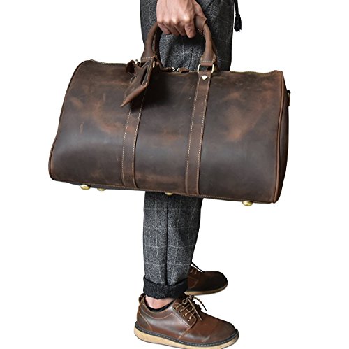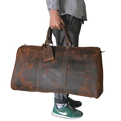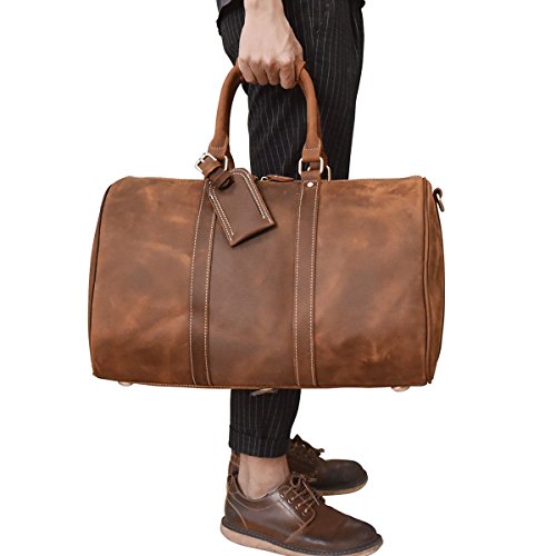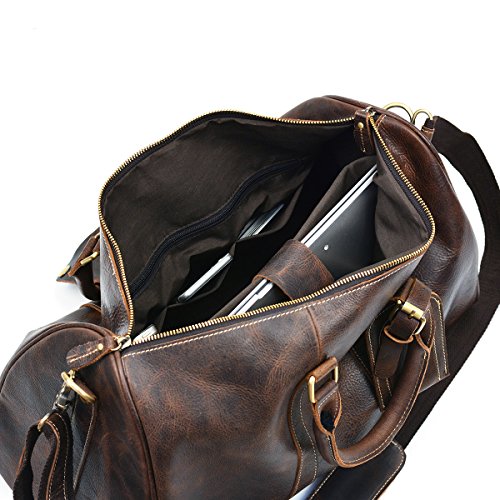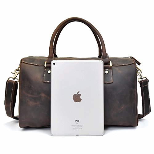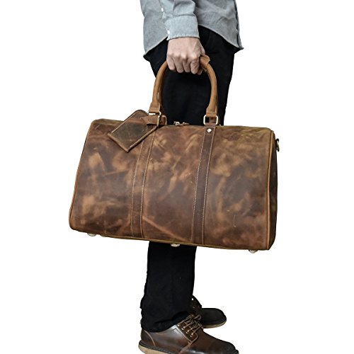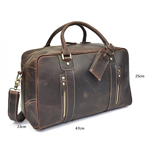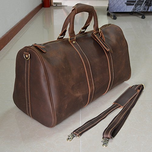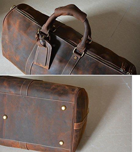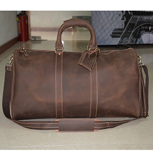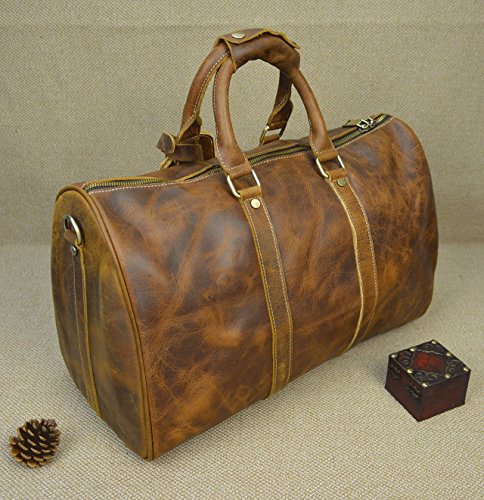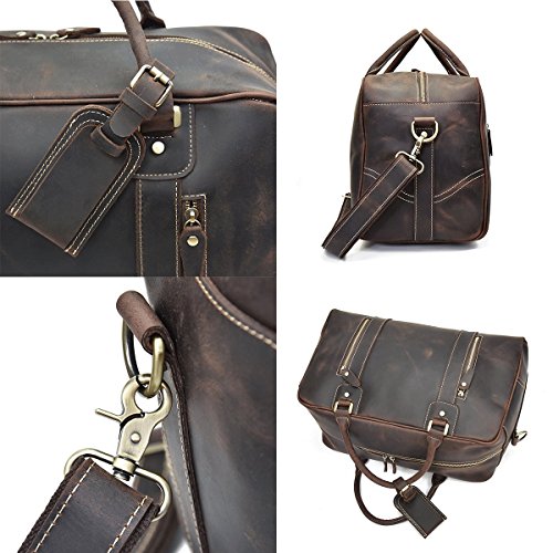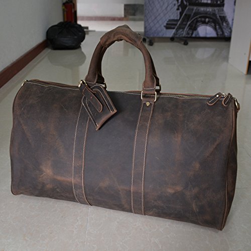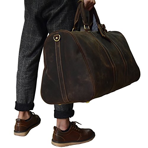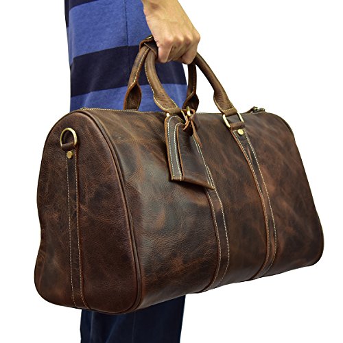 | Men's Genuine Leather Travel Duffle Large Cow Leather Weekend Bag Overnight Messenger |