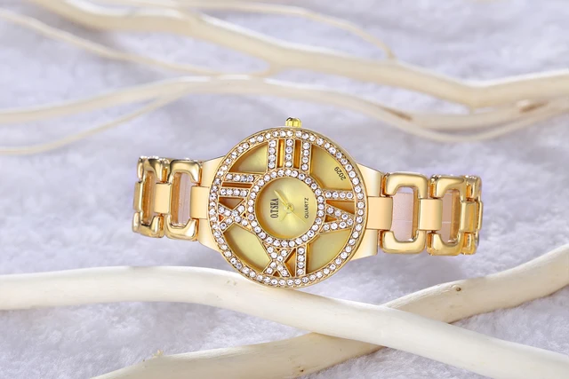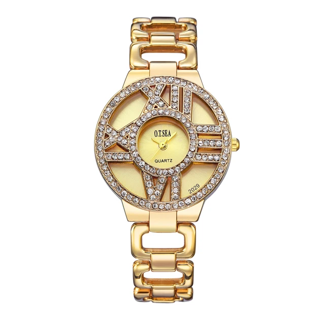 | [해외] O. T. 바다 패션 여성 팔찌 시계 중공 로마 숫자 럭셔리 라인 석 숙녀 석영 손목 시계 Montre 팜므 드레스 시간 |