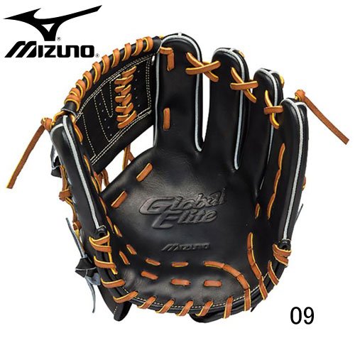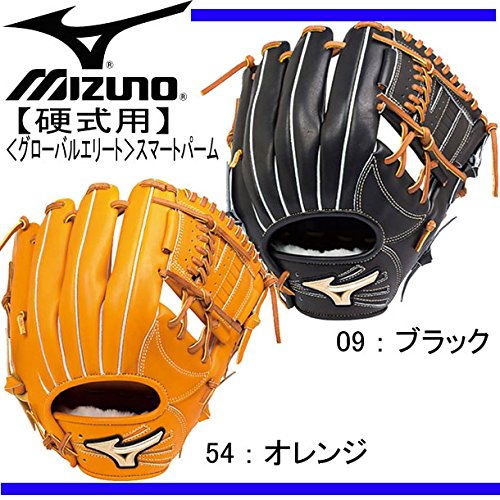 MIZUNO 경식용 글로벌 엘리트 스마트 팜【내야수용】■컬러:09:블랙54:오렌지■# 구면/배면:《후비리티맛쿠레자》(천연 가죽:소가죽)■필리핀제■전용 봉투 첨부■1개 상자 #■우투■크기9