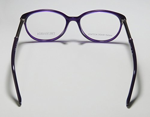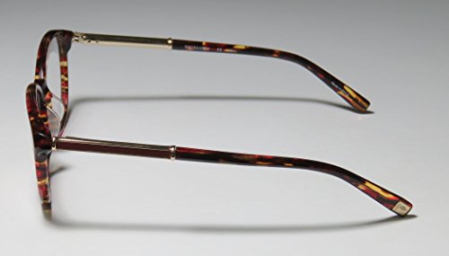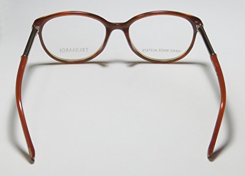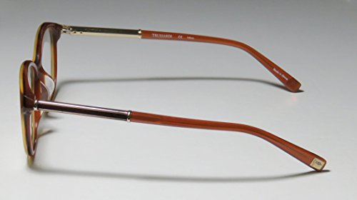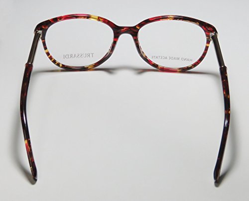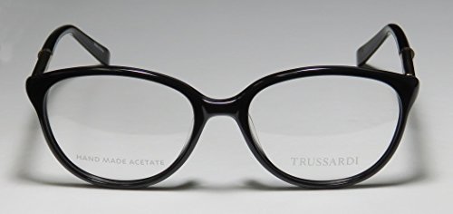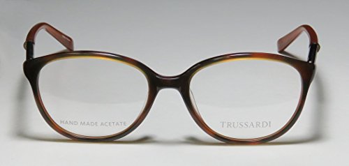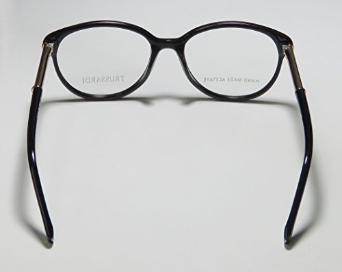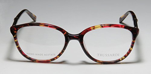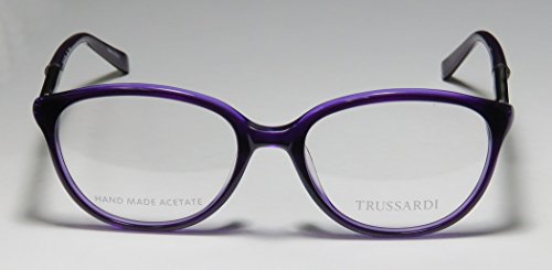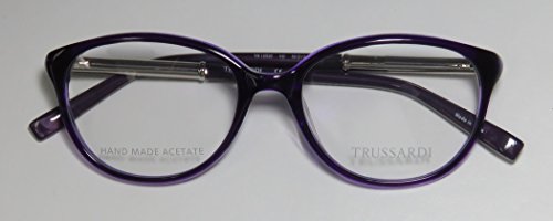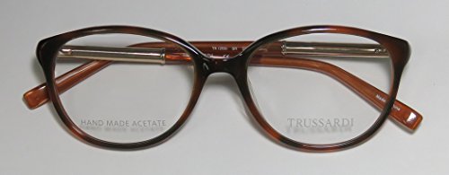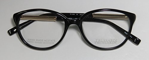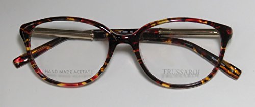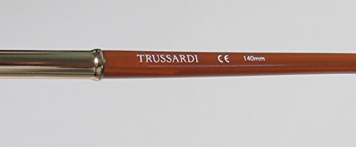 Brand: Trussardi Style: 12520 Gender: womens Frame Type: full-rim Frame Material: metal plastic Case: original The frame is fully rx-able and can be fitted with prescription and/or tinted lenses at most optical stores. Please note that factory demo lenses have a logo stamped on them in ink. This frame provides comfortable fit and flatters a variety of face shapes. These eyeglasses are made of metal and high quality, durable acetate plastic. The frame has spring hinges. Spring hinge temples prevent you from stretching the fit of your glasses and ensure that they remain intact and not become loose or out of shape. The frame has leather inserts. Original case is included. These eyeglasses retail for $220.00 at upscale stores that carry designer frames. Save your money and get them here! The pictures cannot fully reflect the beauty of this piece of designer eyewear. These eyeglasses look even more elegant in real life. This is one of the most popular Trussardi styles on the market right now. 0 |