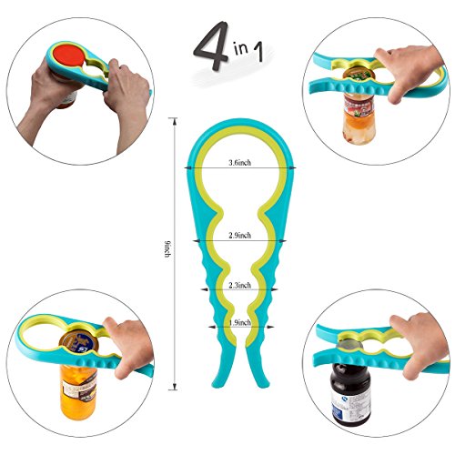 Jar Openers for Seniors with Arthritis, Sturdy Slip Resistant Multiple Size Grip Lid Bottle Opener Rubber Rheumatoid Kitchen Gadgets for Elderly & Senior Arthritis (Blue Yellow)