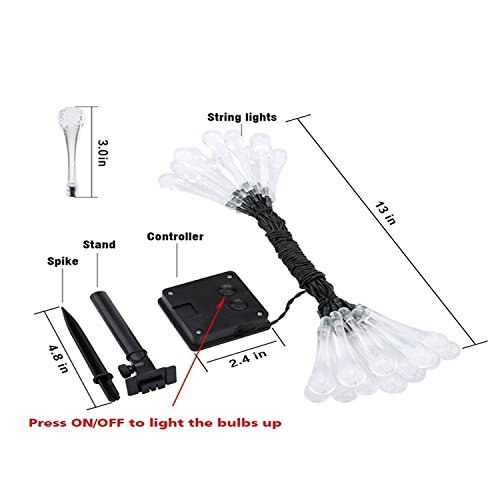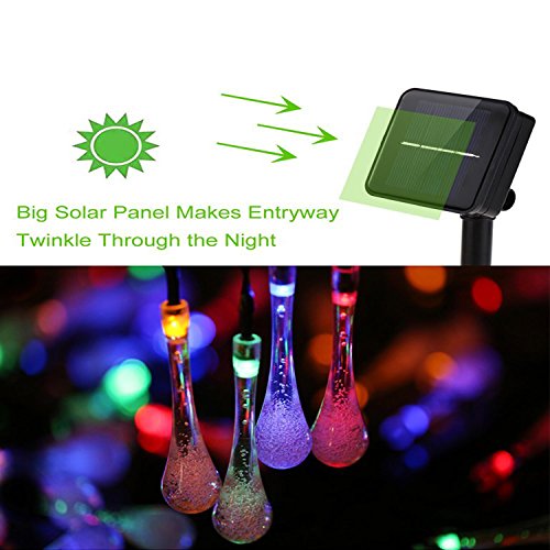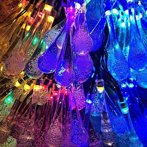 - Put this Mixed Color (Red,Blue,Green,Yellow) LED solar tear drops string lights on tree, vine, porch, bedroom window, balcony, wall, bringing warm and pleasant atmosphere to your home, garden, patio, yard, lawn, gazebo, landscape, wedding or party.
