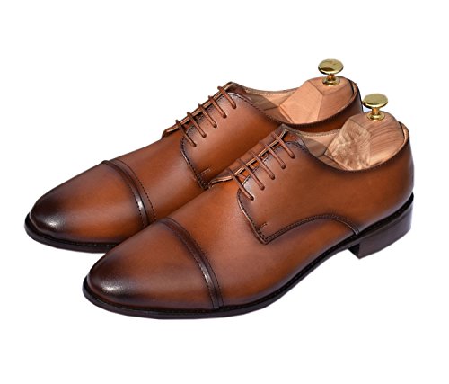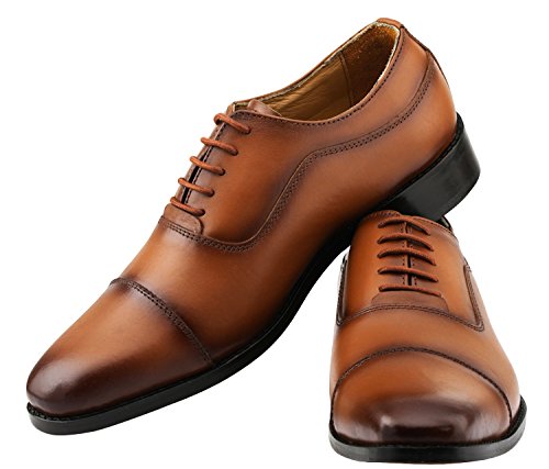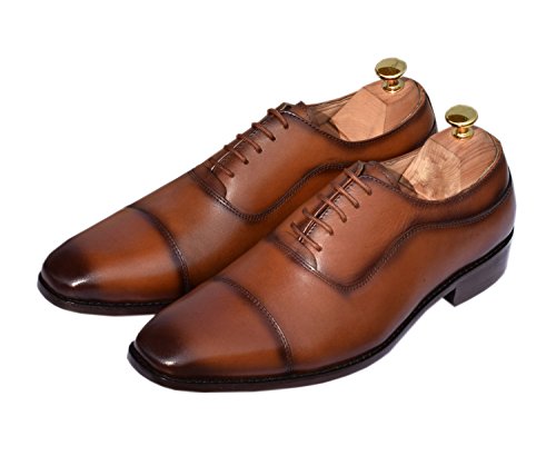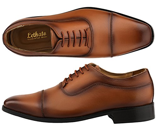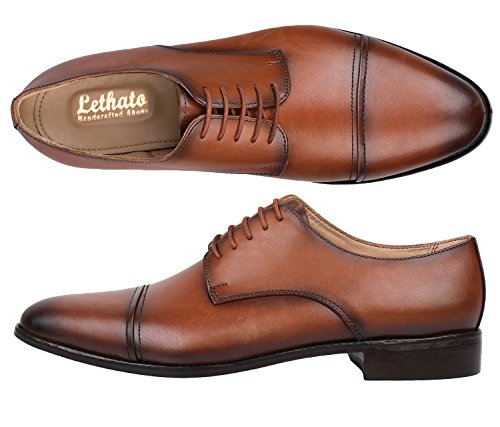 Lethato Handcrafted Men's Captoe Genuine Leather Lace Up Oxford Dress Shoes