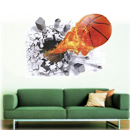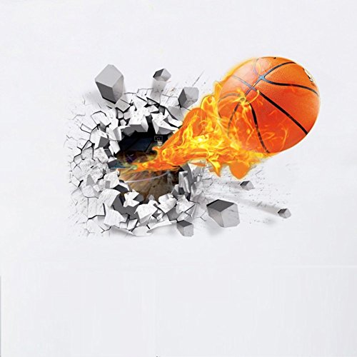 -. Feature : You can stick in walls, doors or any other solid, smooth surface. / Easy to apply and removable, will not damage your walls or windows. Environmental protective and waterproof. / Best for kids bedroom decoration. Product size:length:70 cm width: 50 cm / Lovely vinyl wall decal stickers with 3D basketball rush out the wall. / 100% New, Will deliver item within 48 hours. Material: PVC