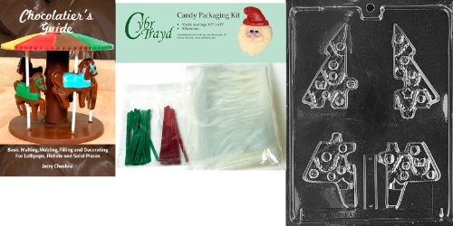 Cybrtrayd Tree Puzzle Chocolate Mold with Chocolatier's Bundle of 50 Cello Bags, 25 Green and 25 Red Twist Ties and Chocolatier's Guide