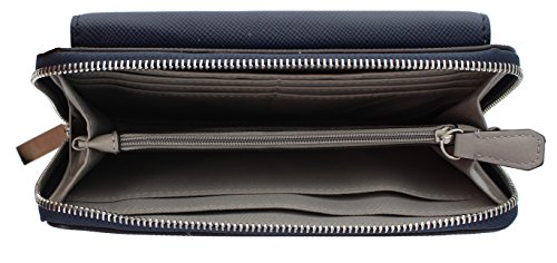 -. Feature : • Zip-Around Organizer Wallet in New Saffiano Faux Leather / • 7.75" x 4.25" x 1.75" . 1 Open V shape easy access Slot on back side / • New Reaction Kenneth Cole Name Plate / • Snap Clip front flap features 12 credit card slots, 1 Window ID pocket, 2 slip pockets for bills / • Zipped Organizer Compartment includes: 6 credit card slots, 4 slip pockets for bills , 1 large zipper pocket for coins and 2 open inner compartments.