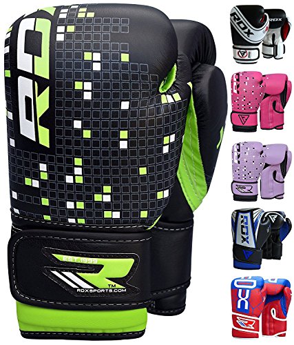 RDX manufactures junior Muay Thai kickboxing gloves that are suitable for youth that are into serious training. These Kids boxing gloves can be used on focus pads, punch bags, or even while sparring. It's versatility matches its high quality build. Made of Maya hide leather for extended durability and a long life. Slipastic wrist design provides ease of use for convenient training. With the exclusive TLock anti-thumbing feature you don't have to worry about your child throwing wrong punches. Optimal ventilation with Cool-X mesh technology, palm-side, helps cool the hands down while your children maximize their potential in the gym. 4oz and 6oz gloves are recommended for 7 to 15 year old childrenFeature