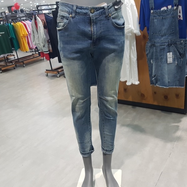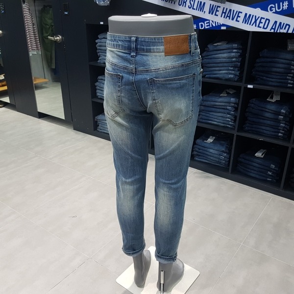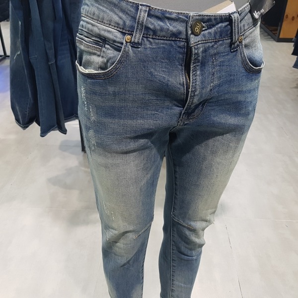L톤의 빈티지 무드의 크롭 라이더. 깔끔한 워싱에 강도가 약한 긁는 구제들과 그 위에 지그재그 스티치 작업을 하여 옷이 전체적으로 튀지않게 멋스러움.