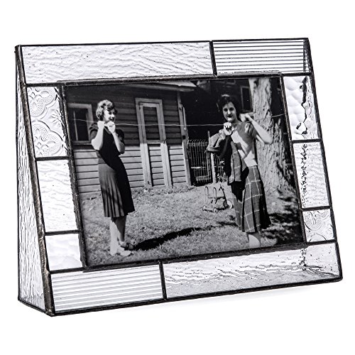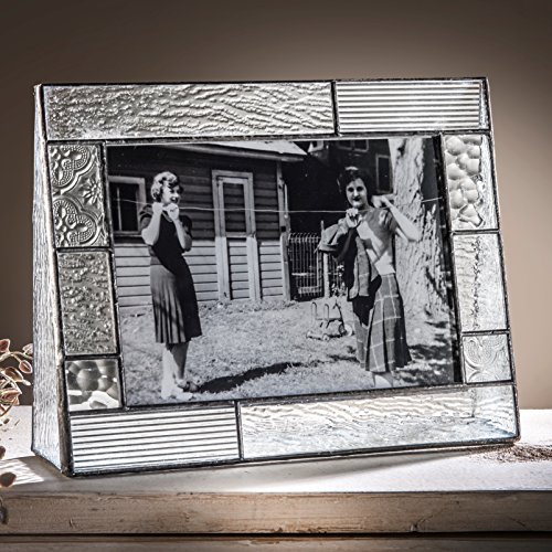 A myriad of clear textured glass pieces come together to create a family of glass photo frames from J. Devlin. This 5" x 7" horizontal frame features glass sides and base for added stability, and to allow more light to shimmer off of each piece of glass. Find the right mix of sizes and colors of glass picture frames for your home or as a unique gift. All J. Devlin Glass Art is lead free.Feature