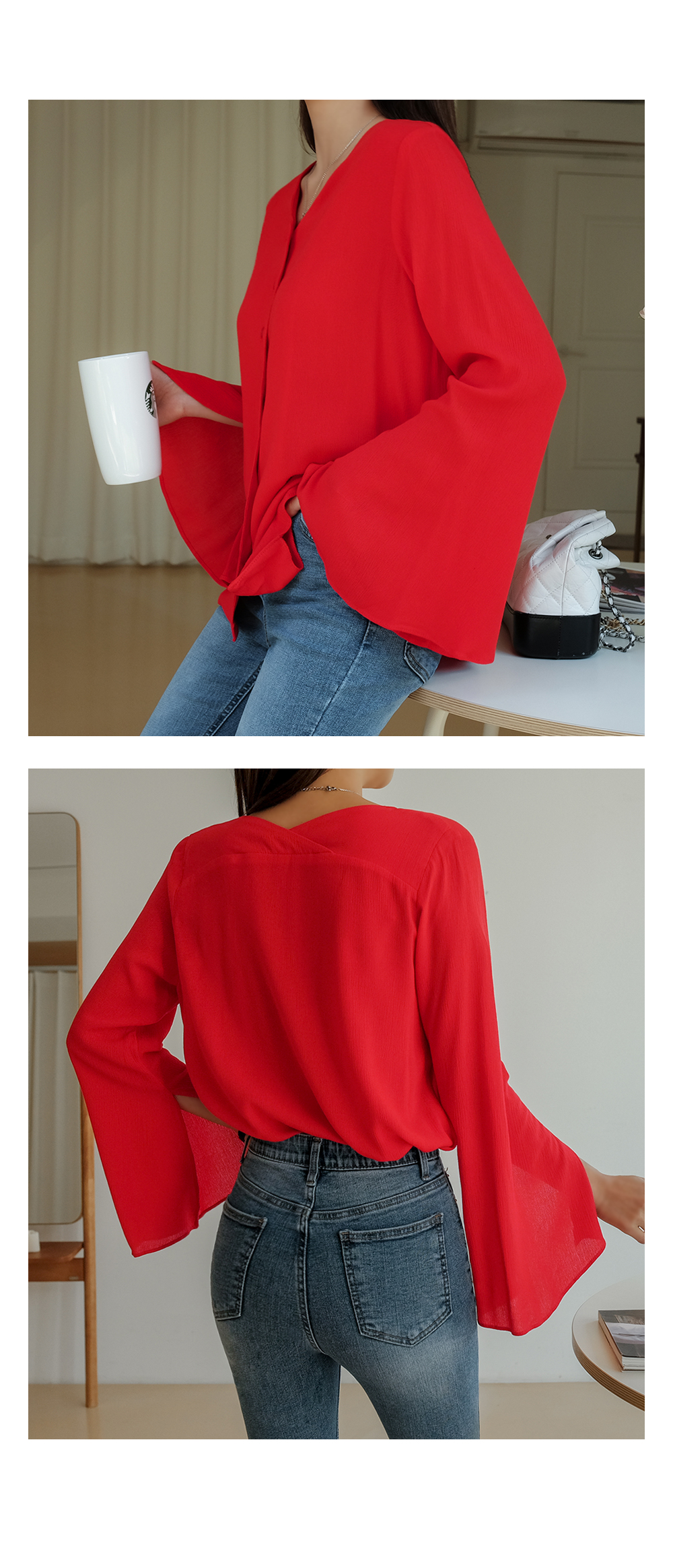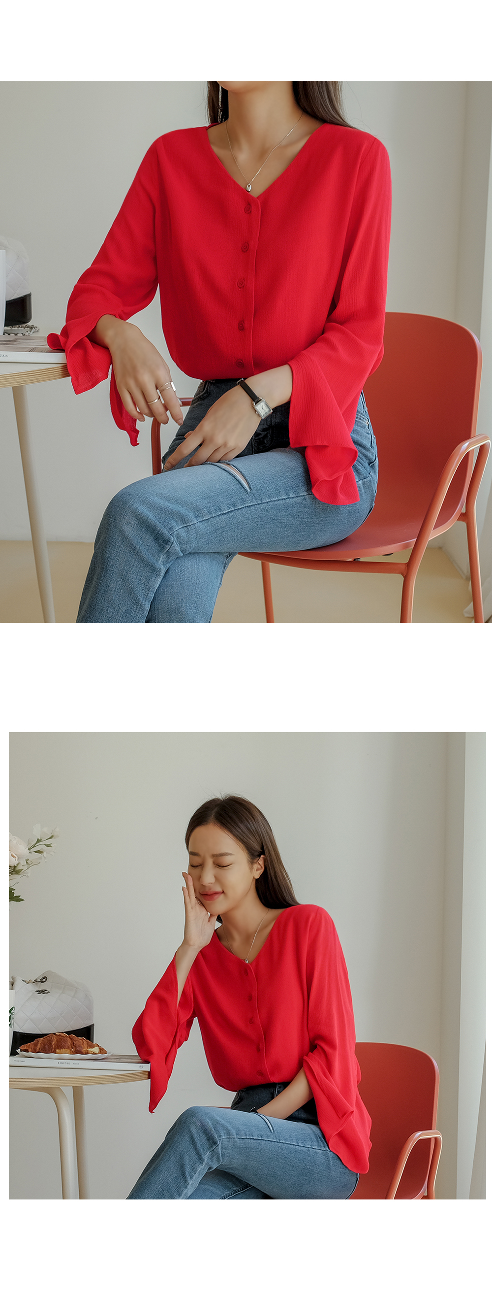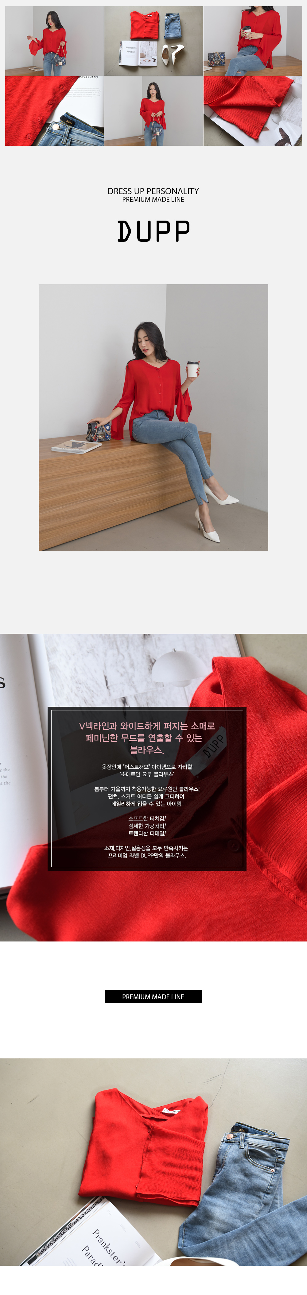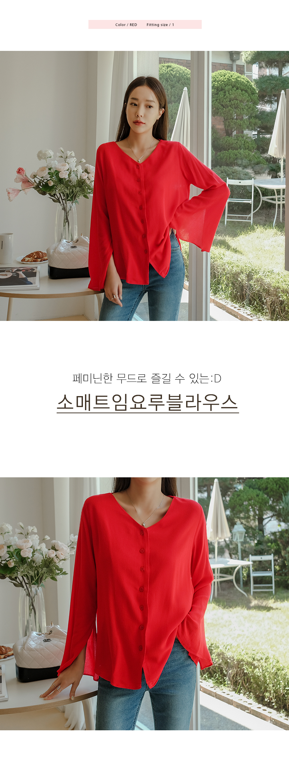 V넥라인으로 예쁜 쇄골 연출이 가능한 블라우스에요~
