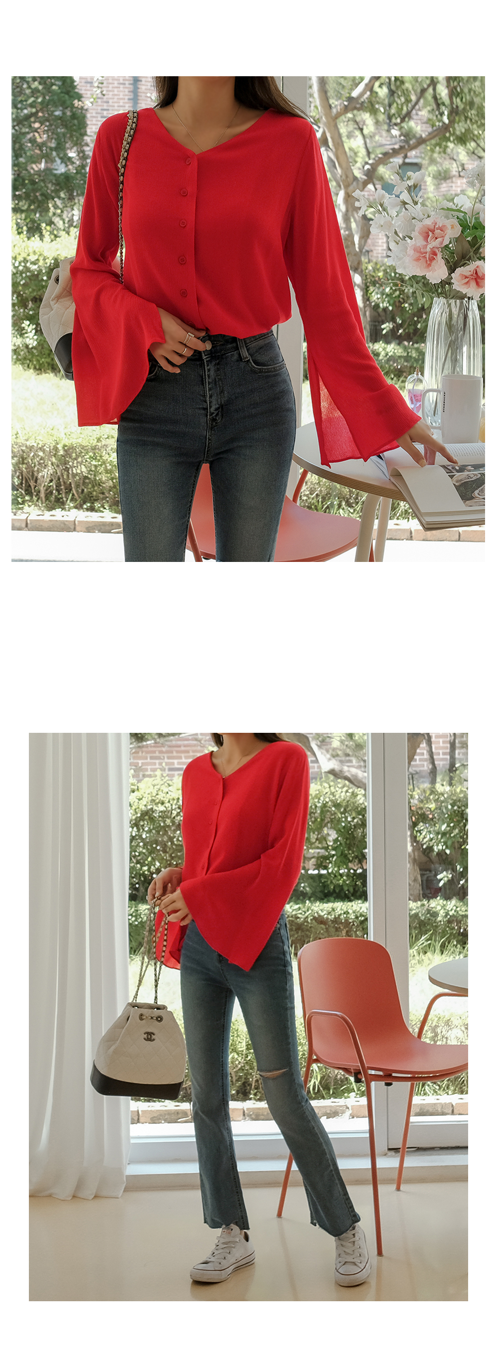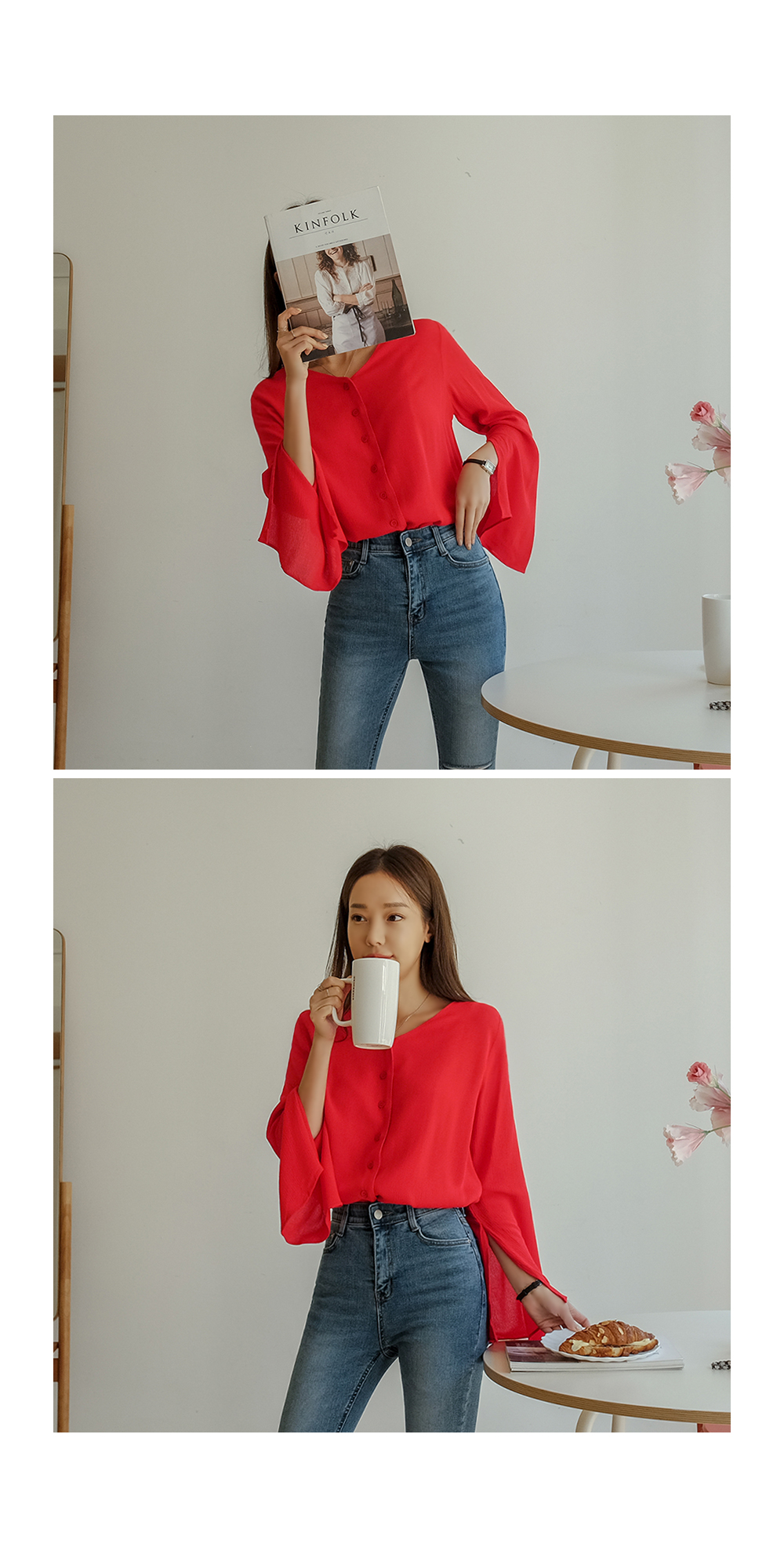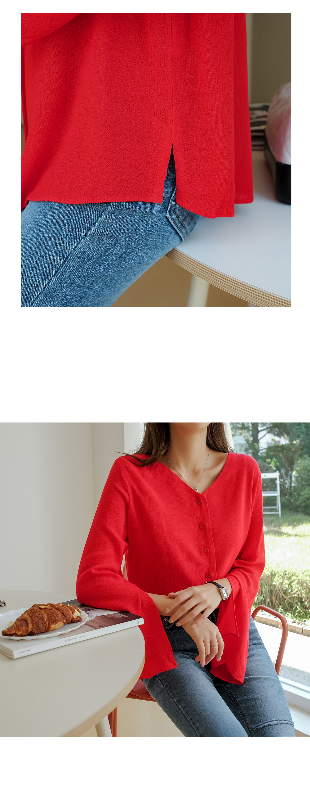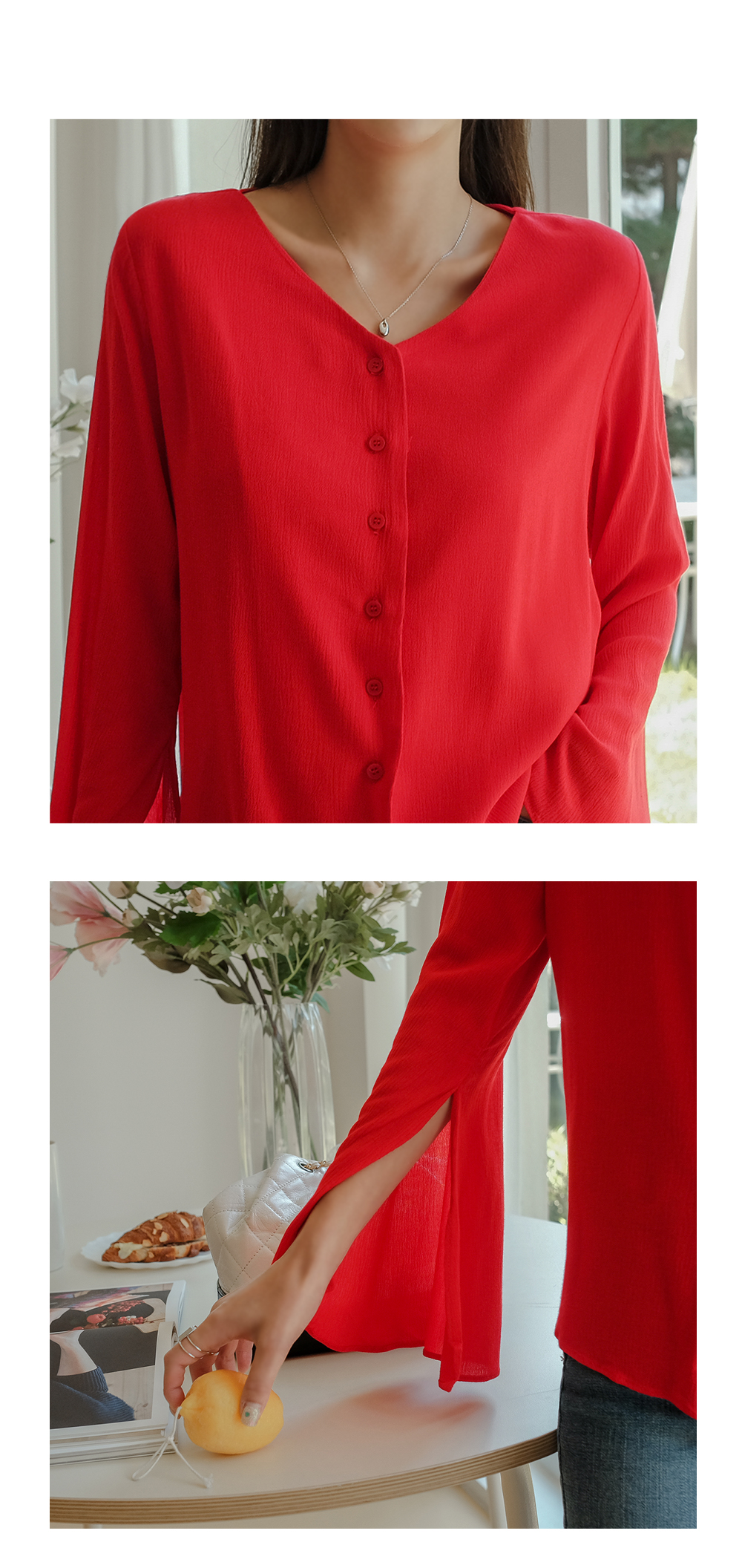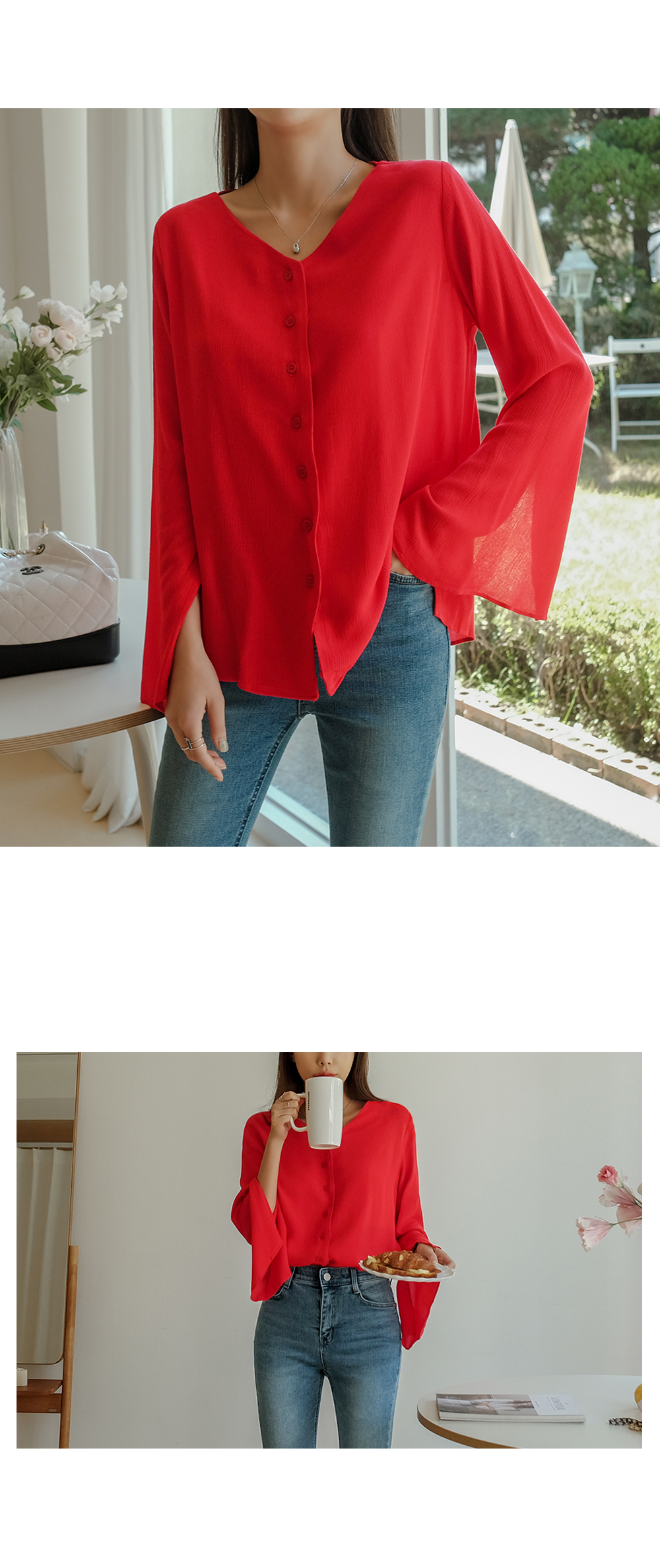 V넥라인으로 예쁜 쇄골 연출이 가능한 블라우스에요~