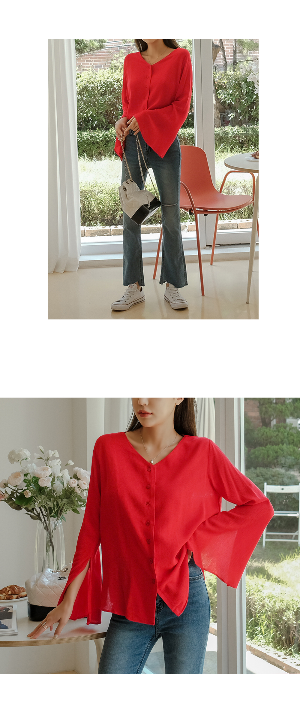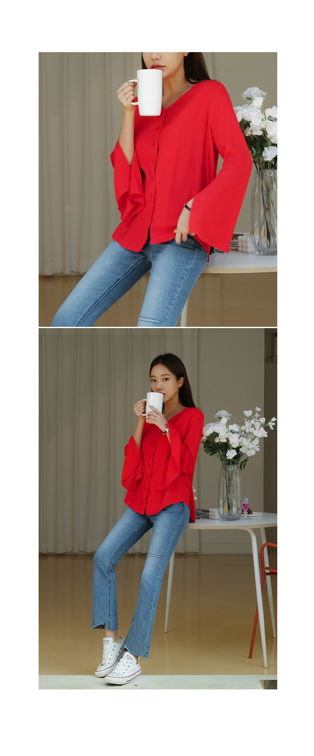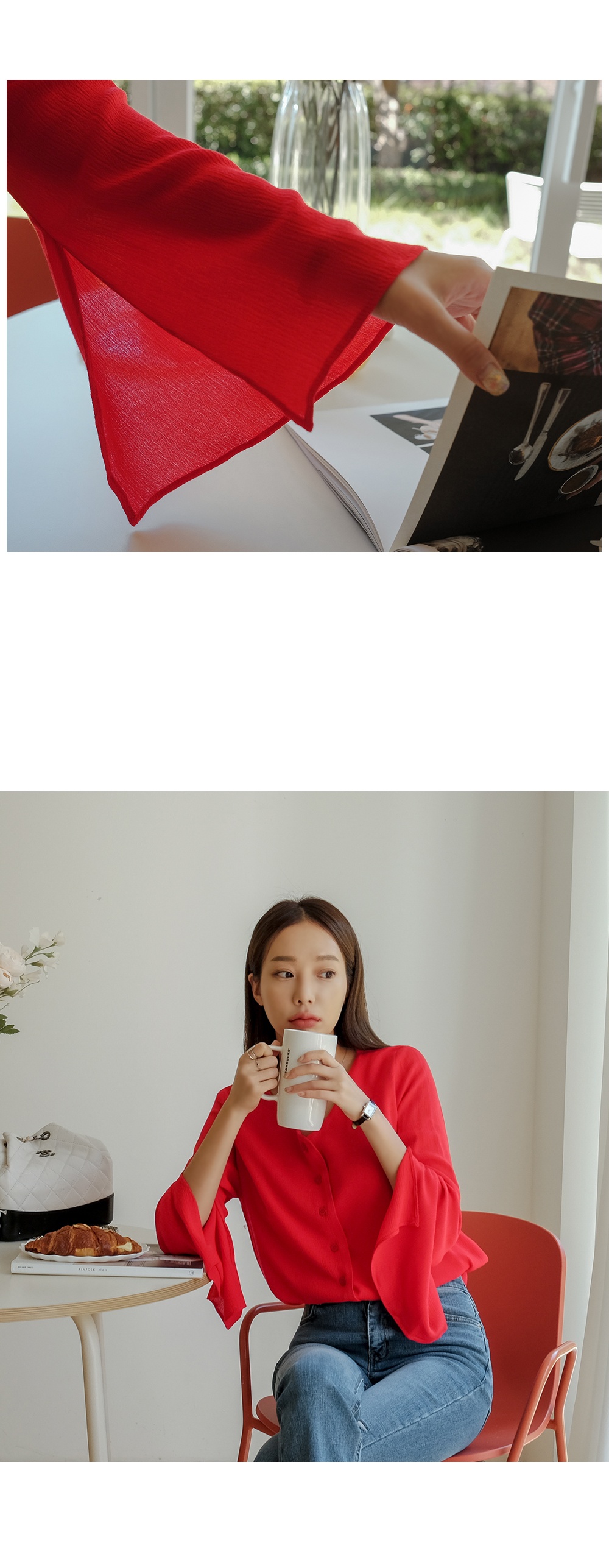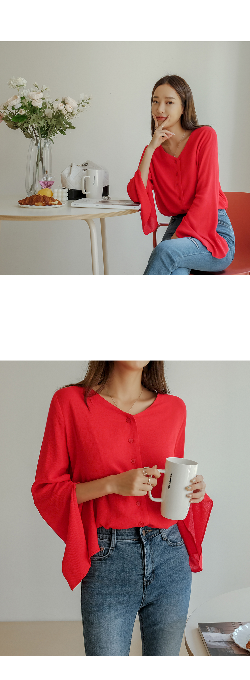 V넥라인으로 예쁜 쇄골 연출이 가능한 블라우스에요~