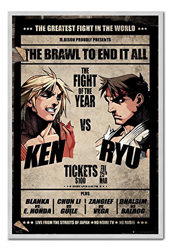 -. Title : Street Fighter Ken VS Ryu Fight Poster Magnetic Notice Board Silver Framed - 96.5 x 66 cms (Approx 38 x 26 inches)