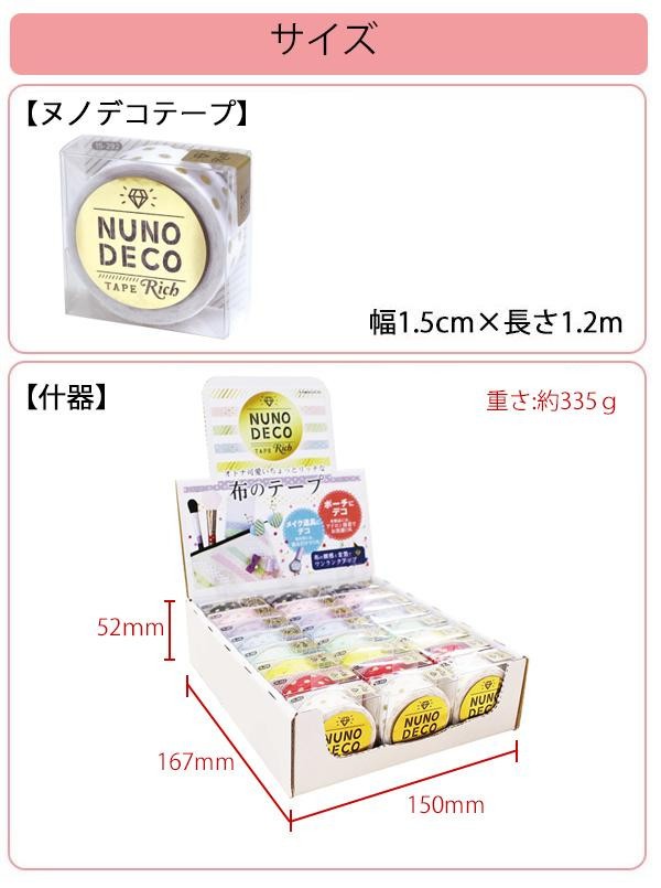 | セット内容 | 置き型什器、ヌノデコテープ(リッチドット)8色×各3個 |