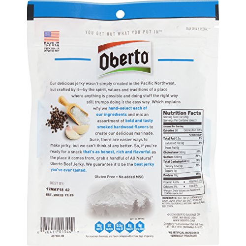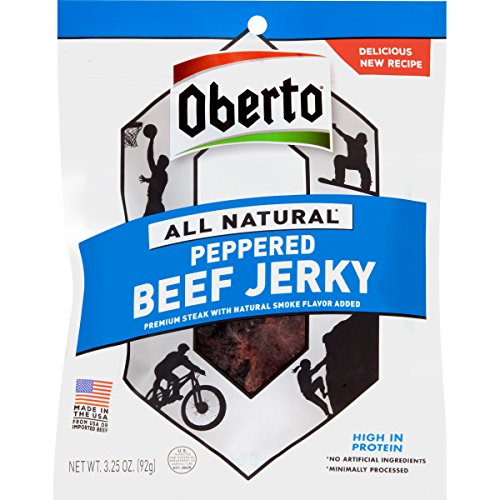 Oberto All Natural Peppered Beef Jerky, 3.25-Ounce Bag (Pack of 4)