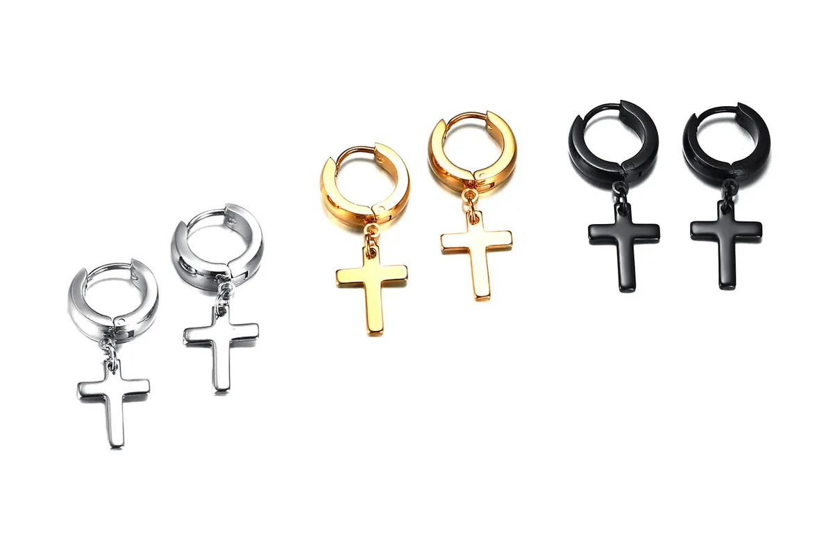 Name:Small Crucifix Hoop Earings