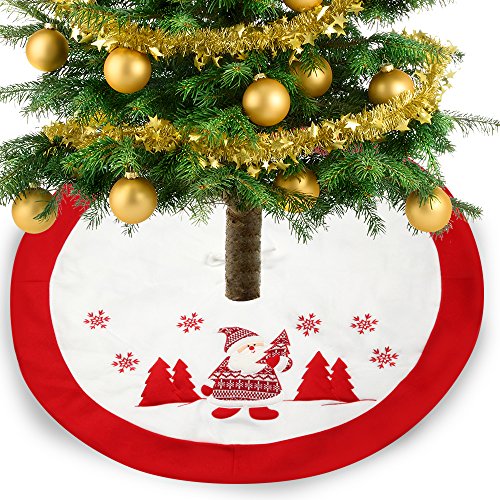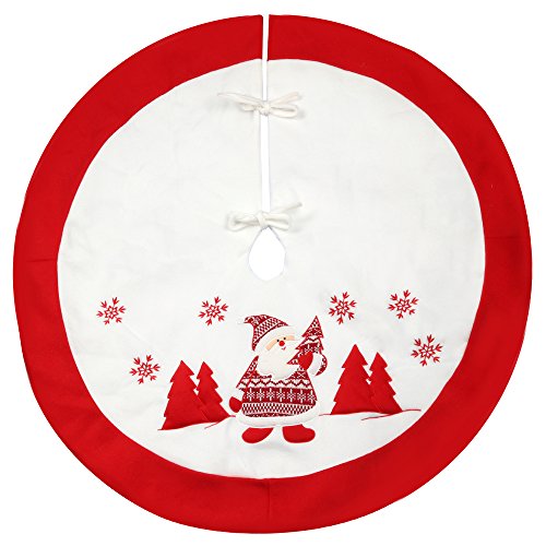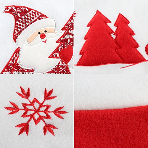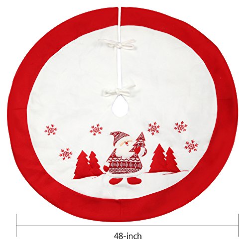 Christmas Tree Skirt 48 Inches - Mocoosy Short Villus Tree Skirts with Embroidery Santa Claus and Snowflake Image Christmas Decorations, Home Holiday Decor White and Red