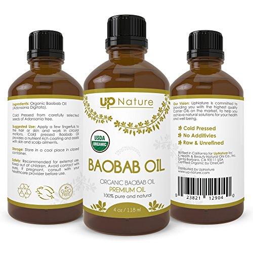 UpNature The Best Baobab Essential Oil 4 OZ - Organic - 100% Pure Unrefined GMO Free Premium Quality - With Dropper - For Hair & Shampoo Use