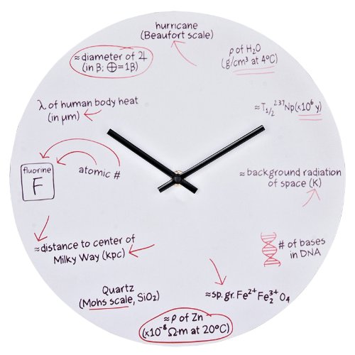 - Feature : Work out the scientific equations to determine the hour / White powder coated metal background / Requires one AA battery not included / Quartz movement