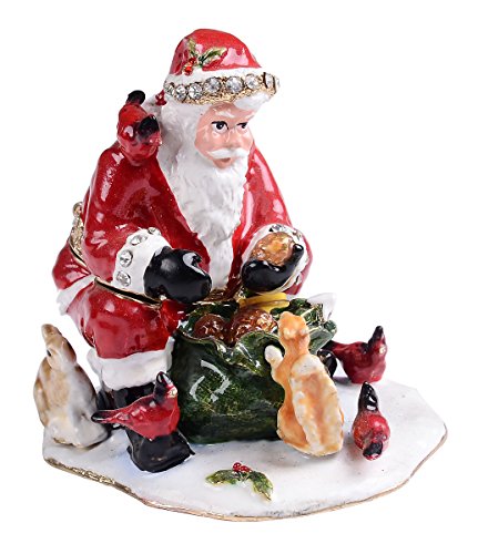 - This jeweled Santa & Squirrel trinket box is hand enameled and encrusted with Austrian crystals.