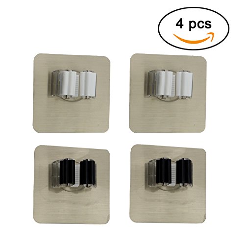 Ogrmar Self Adhesiv Broom and Mop Holder Adhesive Wall Mounted Mop and Broom Hook Hanger Holder Reusable Wall Mounted Mop Hooks Broom Hanger Holder with Spring Clip Design (white and black)