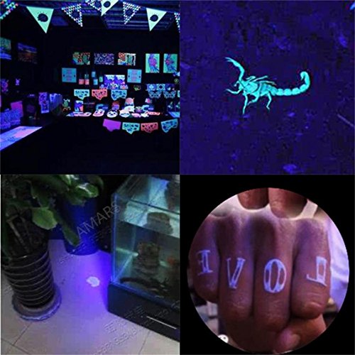 Widely application: 1.)fluoresce dried urine, odor of dogs cats small animals on carpets, stains, food stains; 2.)test authenticate currency, passports etc; 3.)promote plant growth; 4.)induce and kill insect; 5.)night fishing: fishes have Photo taxis, violet color is best used for lighting the float on the night while don't disturb the fish; 6.)creat amazing atmosphere: do a great job with UV body paints & fluorescents at party, DJ, stage, gallery, Halloween etc.