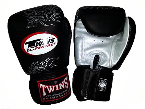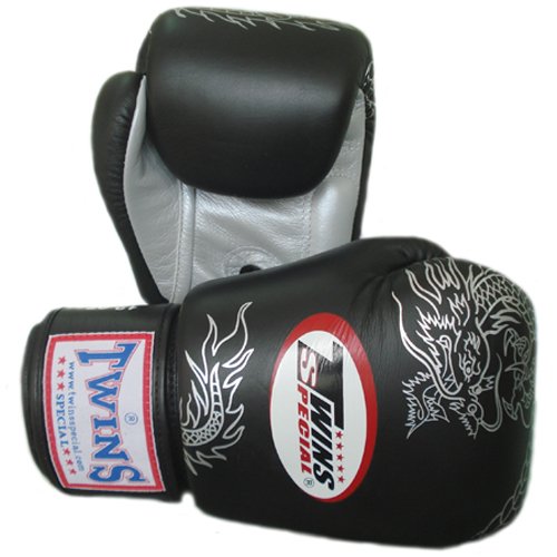 -. Title : Twins Special Muay Thai Boxing Gloves FBGV-6S-BK Black Silver Dragon 8-10-12-14-16 Oz.