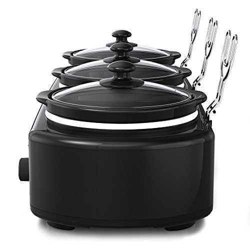 Easily create and serve multiple meal options with the unique Midea Triple Crock Slow Cooker