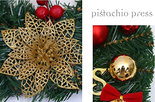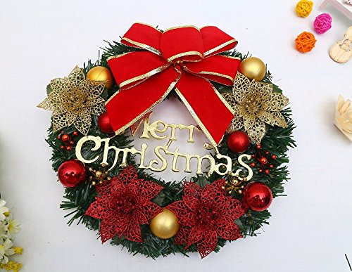 BBTI 30cm 12 Inch Christmas Decorative Garland With Bowknot Flower Double Bell Style Christmas Hanging Wreath (A model-Red Flower)