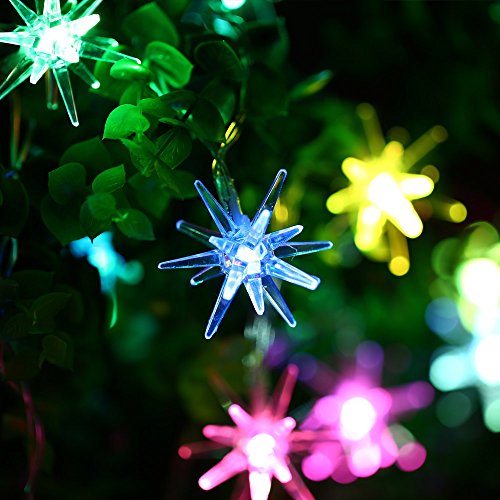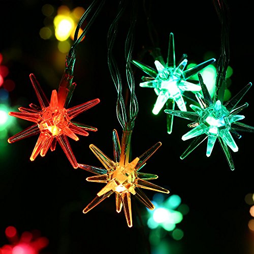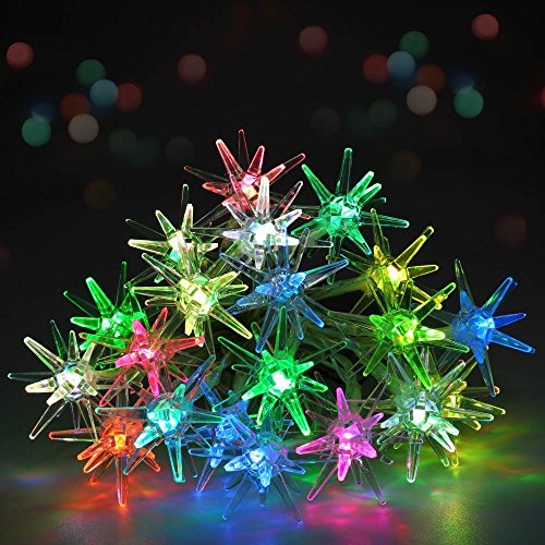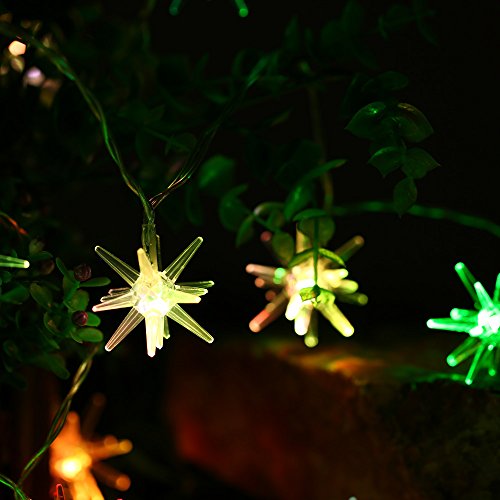 Icicle Battery String Lights Outdoor,10.5 ft 20 LED Auto Time Starburst Lights , Battery Powered String Lighting with 7 Color Slowly Flashing Mode for Indoor Outdoor Decorations (Multi Color)