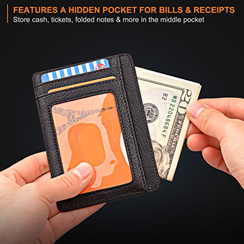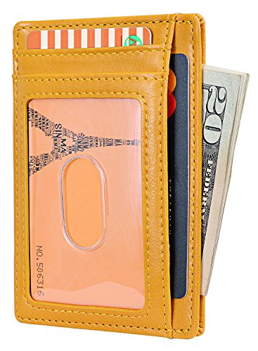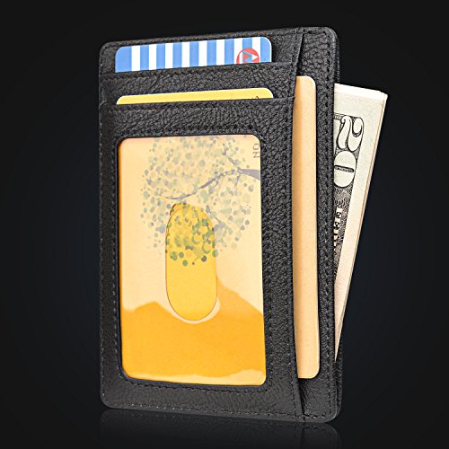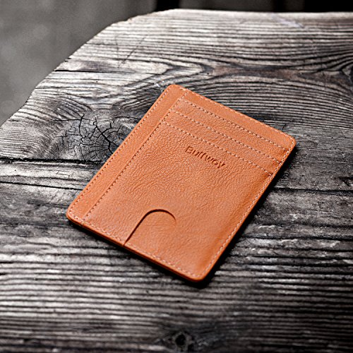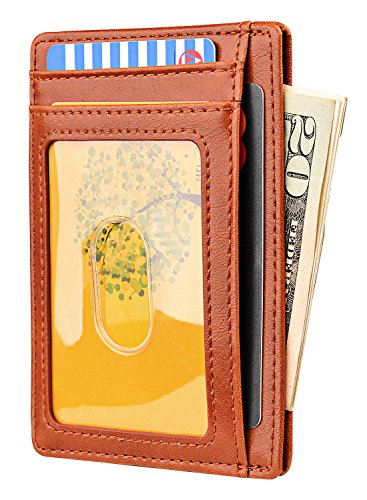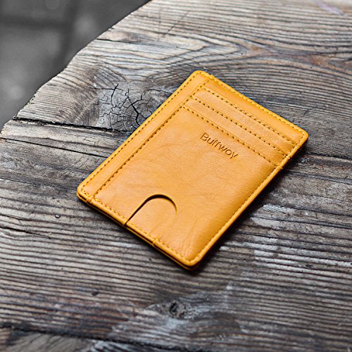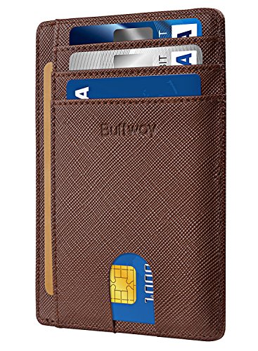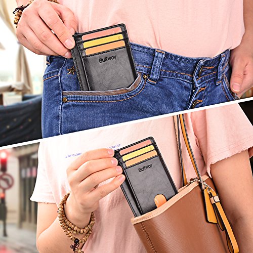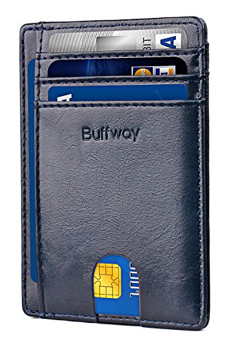 No-hassle 12 month free replacement guarantee for the Buffway wallet. Most RFID blocking sleeves are bulky difficult to carry when traveling, but this one has been designed with the modern traveler in mind. Extra slim, lightweight perfectly portable, our RFID blocking minimalist wallet is preferred among men women travelers looking to lighten their load while still protecting their identity, credit cards, passport cards, licenses, etc. The Buffway Wallet Features 8 Slot Compartments - Plenty of Room! ? 4 slots for holding credit cards, debit cards, bank cards, passport cards ? 1 clear window slot with finger glide for ID, work badge or driver's license ? 2 side-slip pockets for business cards, membership cards, train cards, etc ? 1 middle pocket for cash bills, tickets, receipts, coupons, notes so on Minimalist Slim Wallet Specifications: 3 1/8" x 4 7/16" (1/8" thickness without contents) Extremely Thin Lightweight: 1.05oz ABOUT OUR INTEGRATED RFID BLOCKING TECHNOLOGY: We want to make sure your identity is safe when out traveling, shopping getting things done. This is why we've equipped our genuine leather minimalist wallet with a protective layer that blocks 13-14Mhz electronic signals trying to retrieve your personal information. Thieves use these signaling devices to steal credit card numbers, expiration dates, identifiable details so much more. Using an RFID blocking wallet like ours is the easiest most affordable way to ensure your pertinent info is safe secure. Though it effectively guards against common radio frequencies, our id window minimalist wallet doesn't have the ability to block 125 KHz signals such as those for hotel room keys access cards. No other front pocket slim wallet covers all the bases like this one. Don't let this limited time deal slip away. Click 'ADD TO CART' to order your Buffway RFID Blocking Wallet Sleeve today! 0