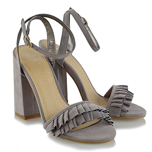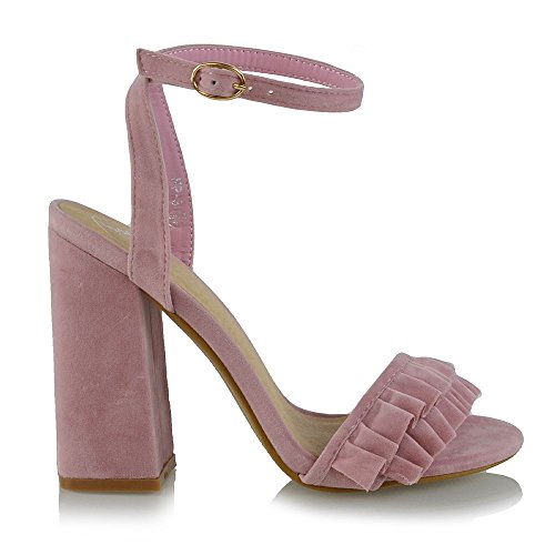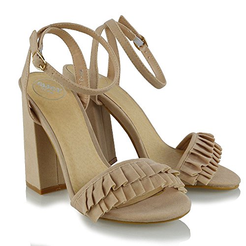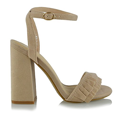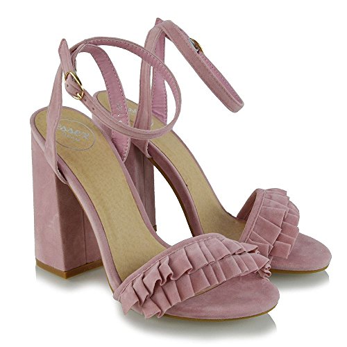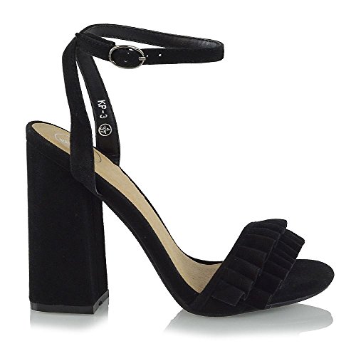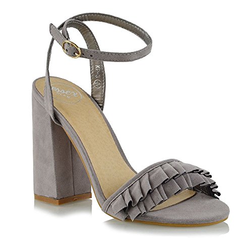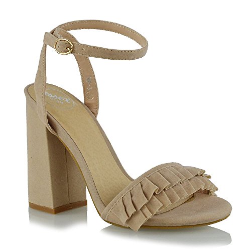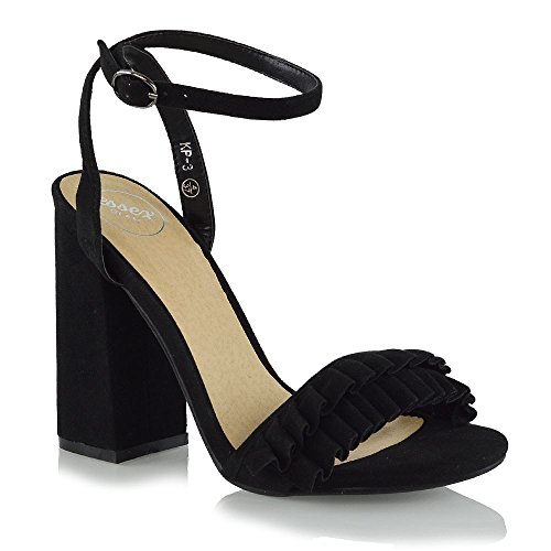 Studio : ESSEX GLAM Publisher : ESSEX GLAM Binding : Apparel Product Description Essex Glam - Women's Ankle Strap Block High Heel Frill Sandals